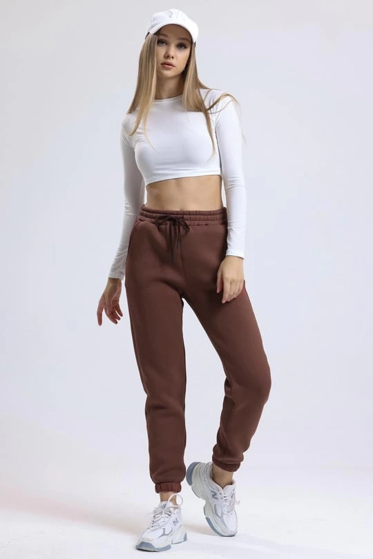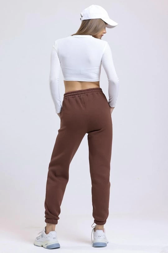3 iplik şardonlu paça lastikli eşofman kahve is001