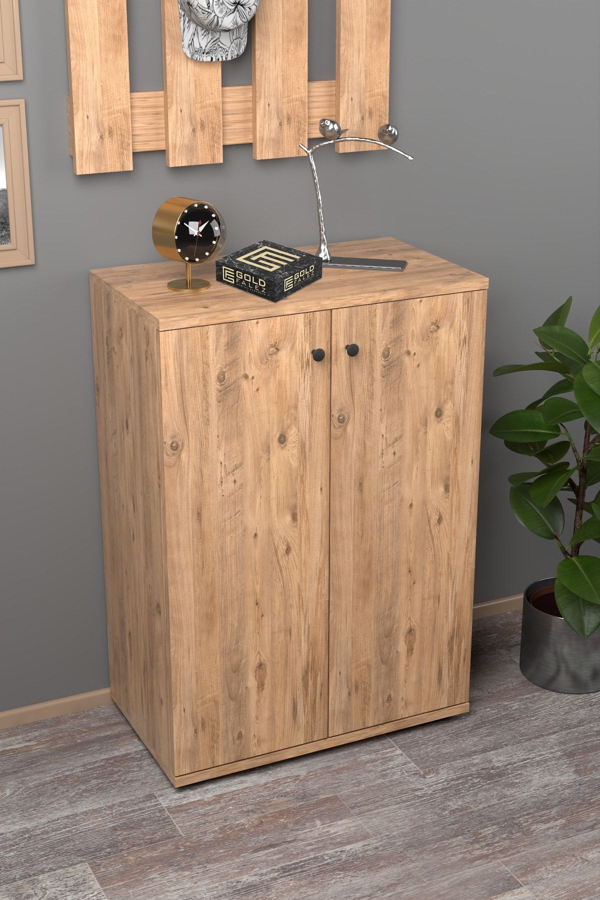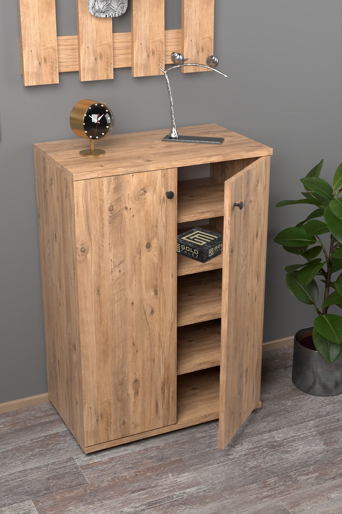 Ayakkabılık Çok Amaçlı Ayakkabı Dolabı 5 Raflı 2 Kapaklı Ceviz