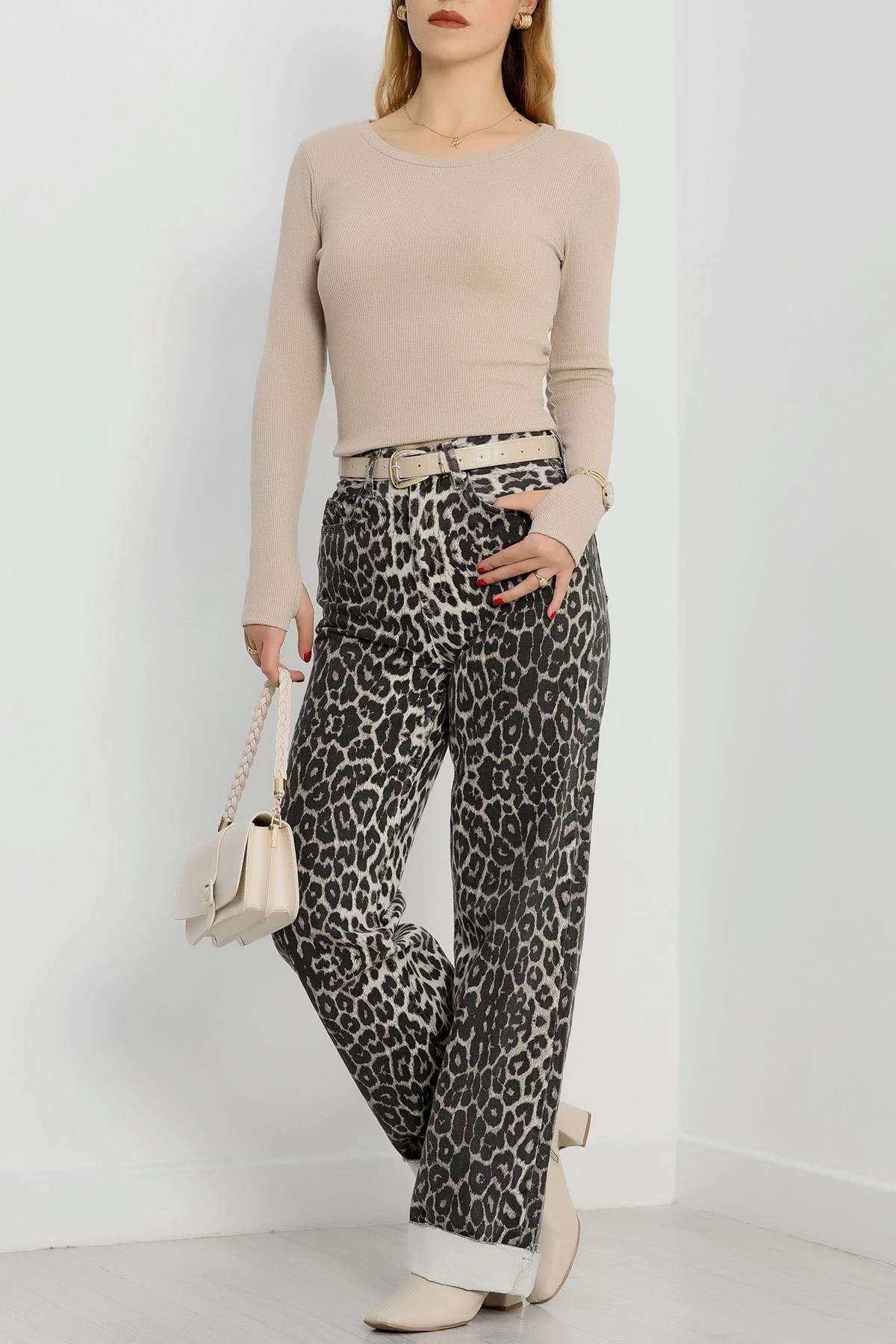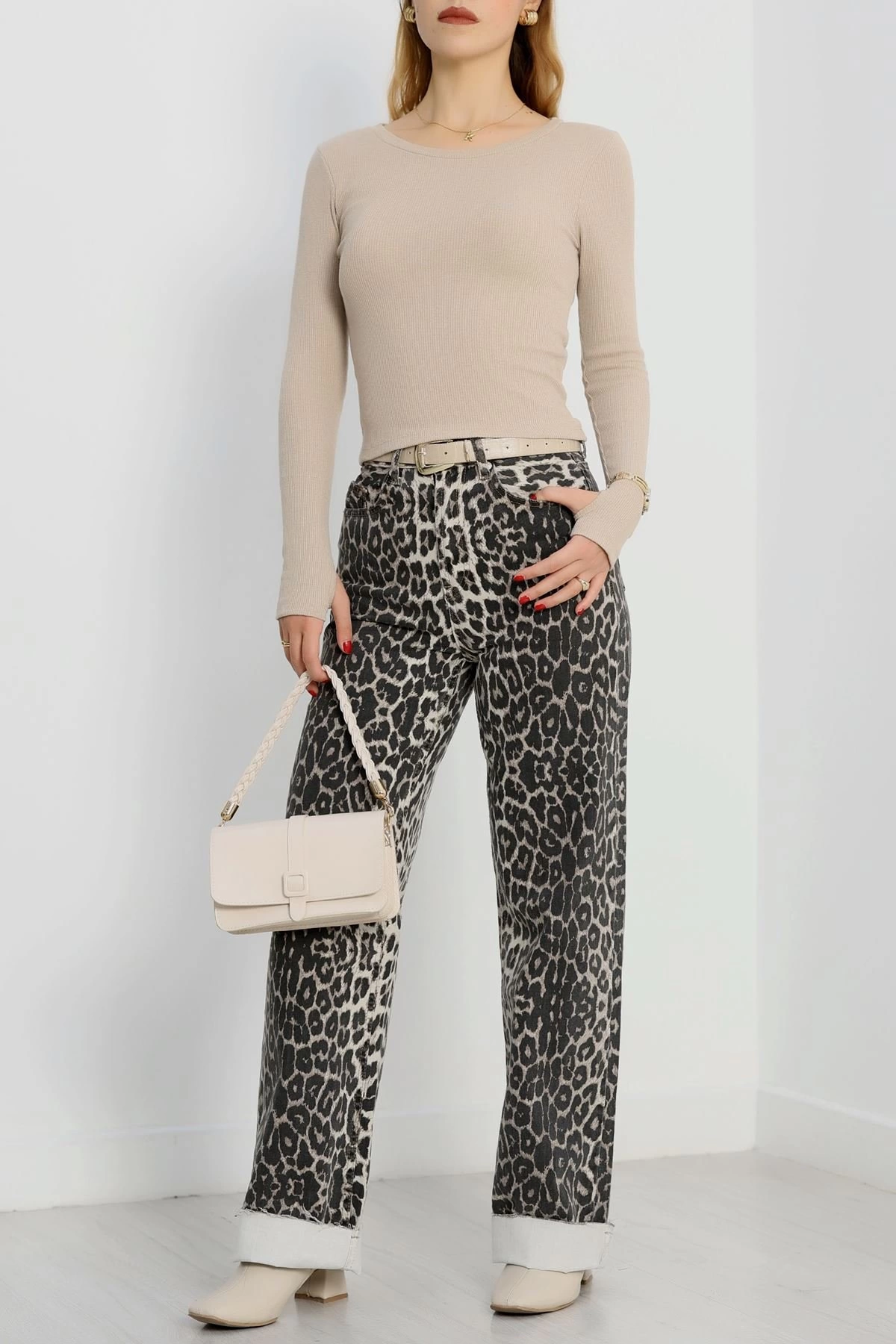 Bisiklet Yaka Parmak Geçmeli Kaşkorse bluz bej a3829