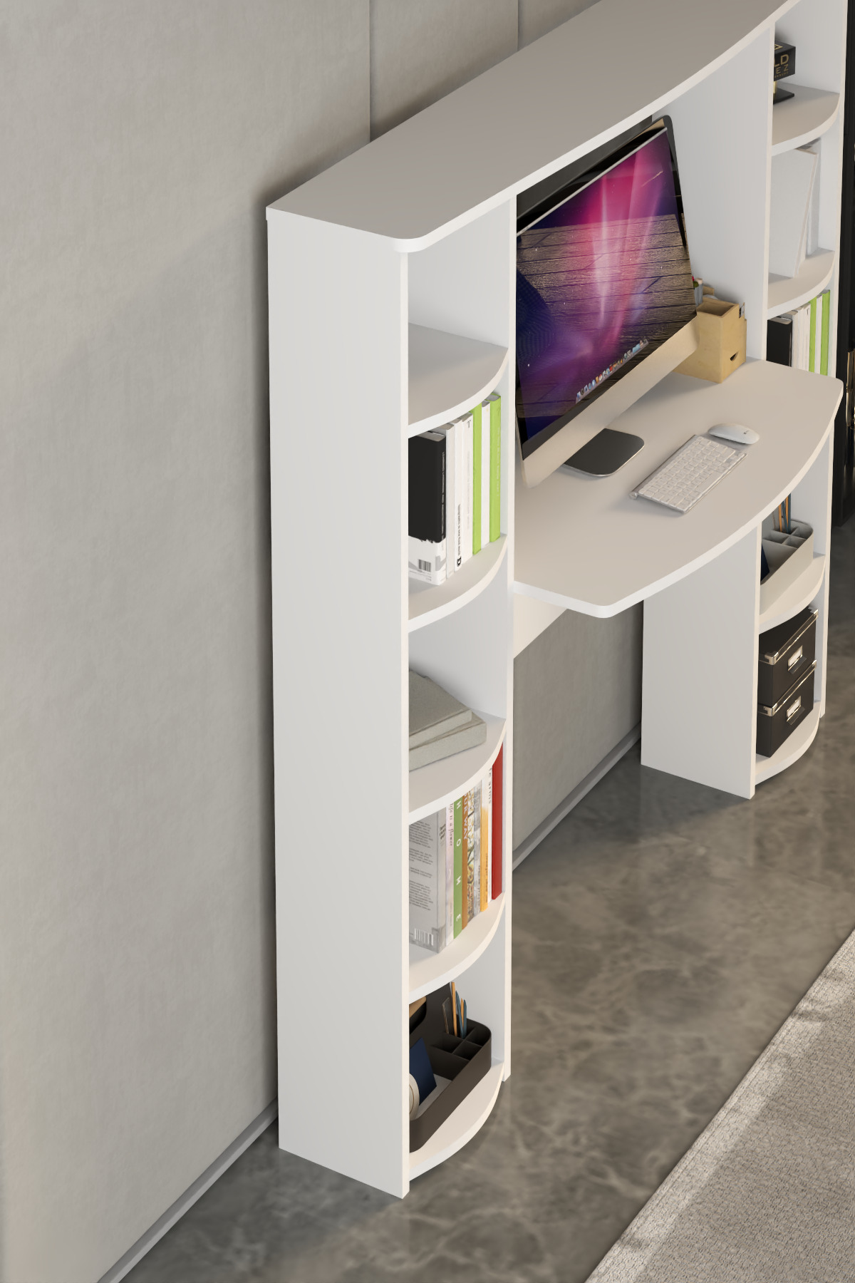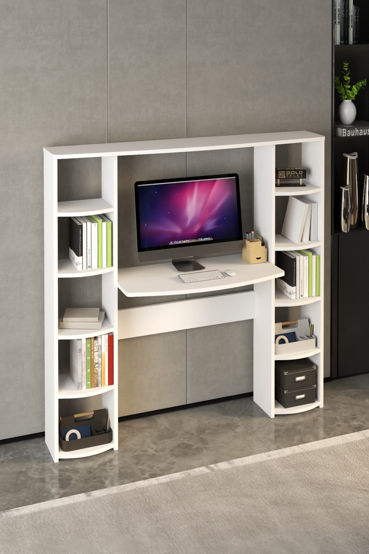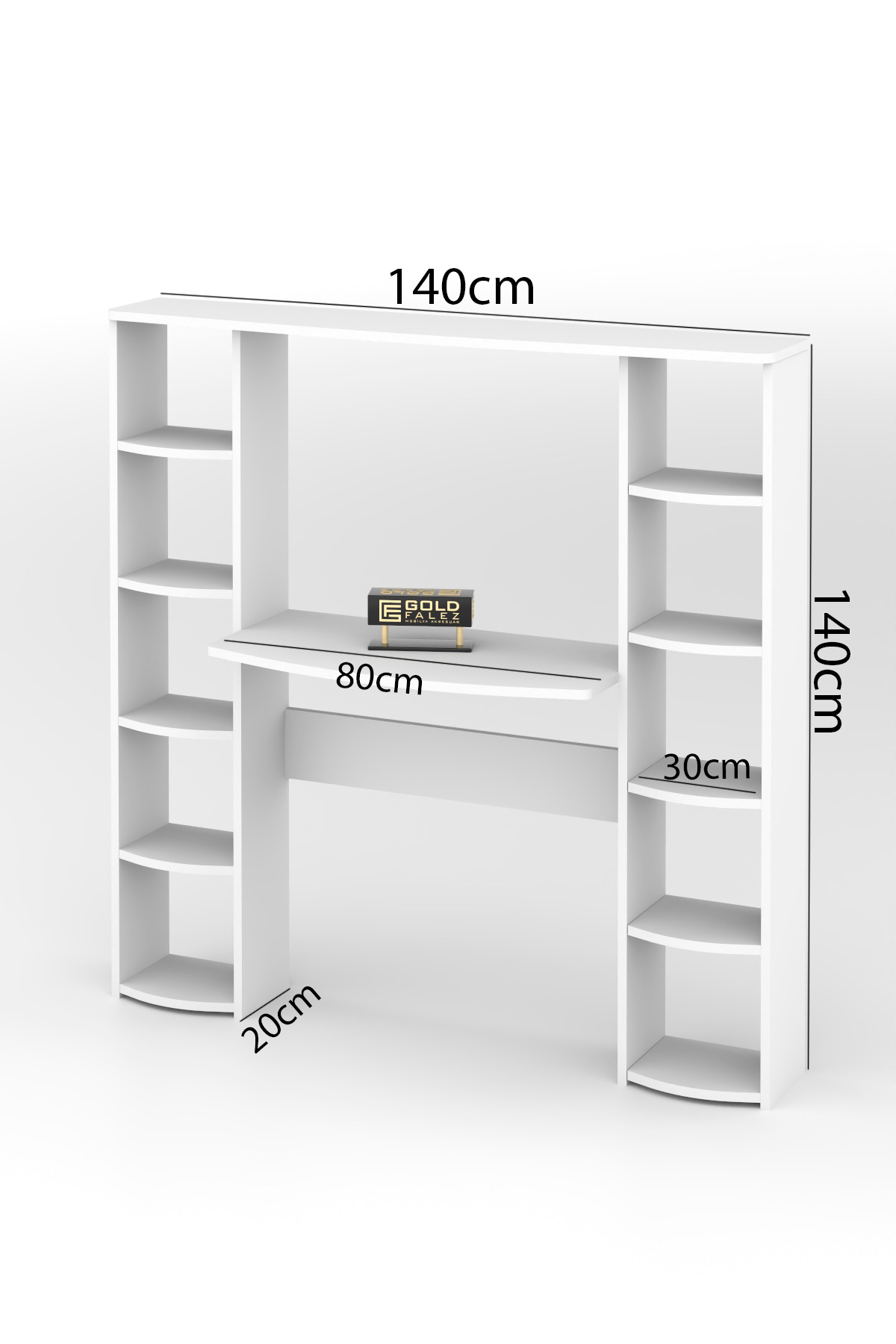 Çalışma Masası 10 Raflı Kitaplık Raf Beyaz
