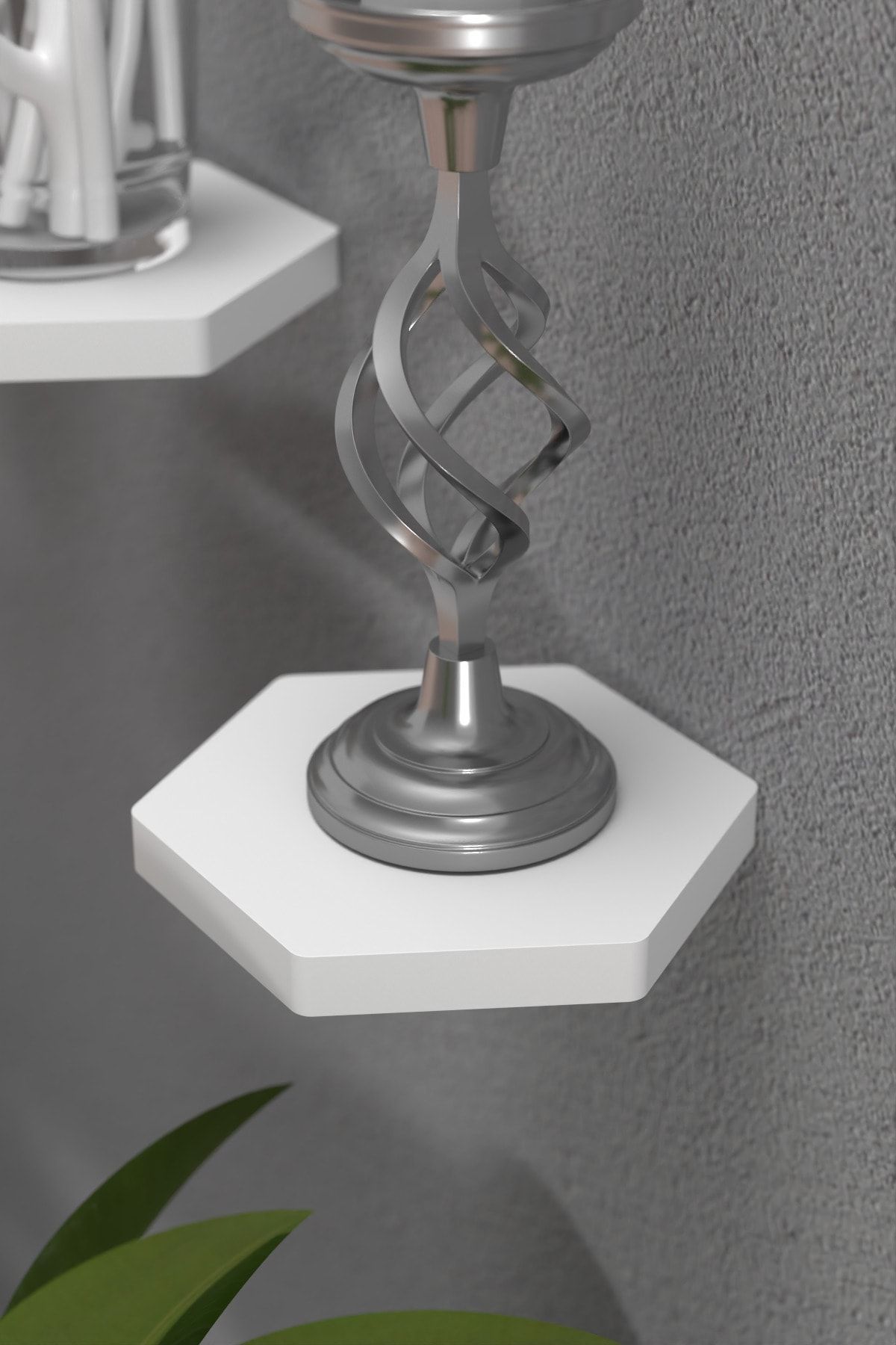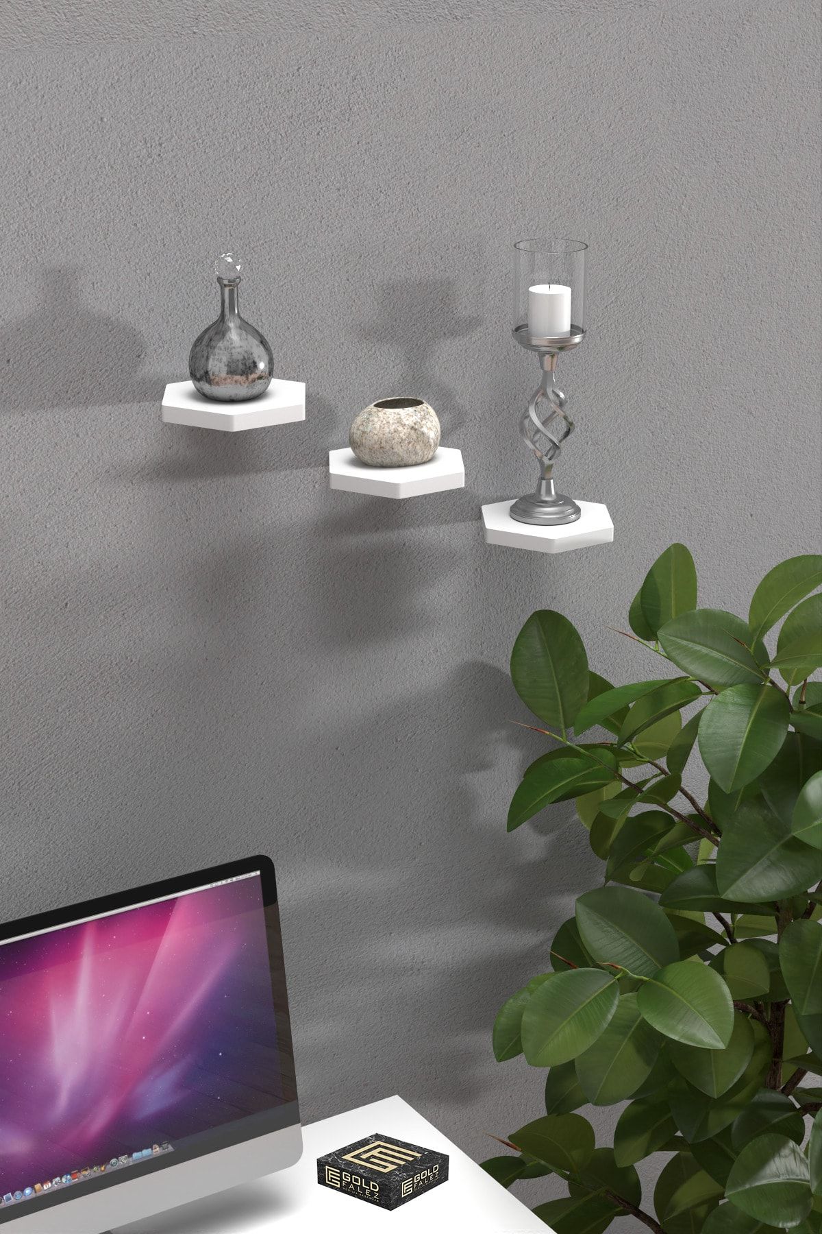 Duvar Rafı Dekoratif 3 Adet Çiçeklik Altıgen Beyaz