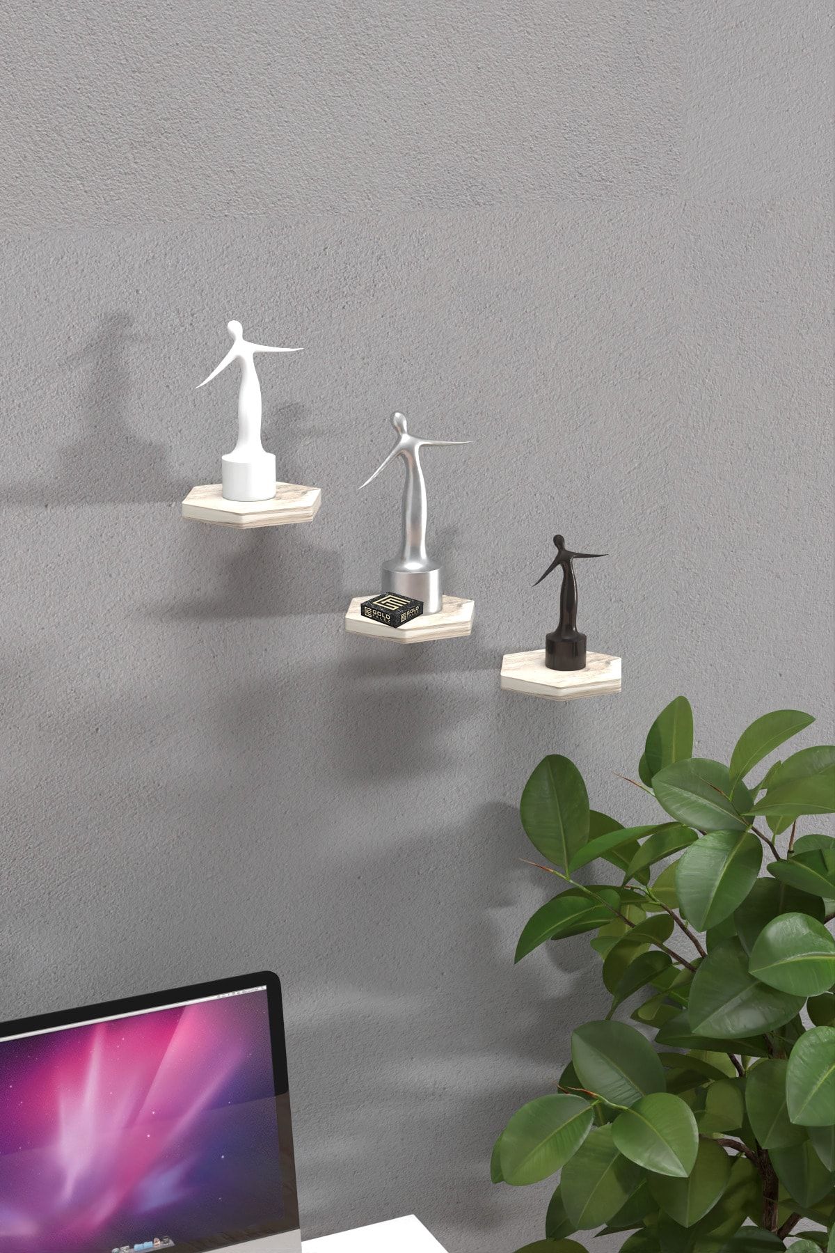 Duvar Rafı Dekoratif 3 Adet Çiçeklik Altıgen Efes