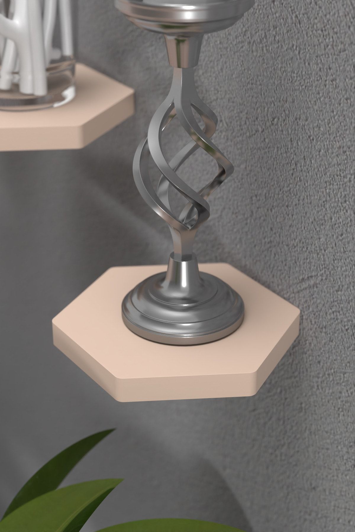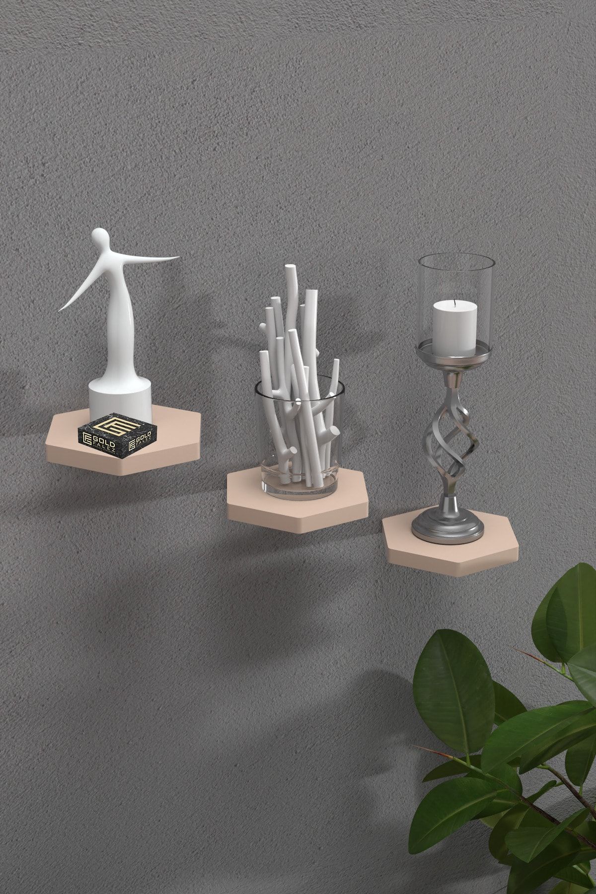 Duvar Rafı Dekoratif 3 Adet Çiçeklik Altıgen Krem