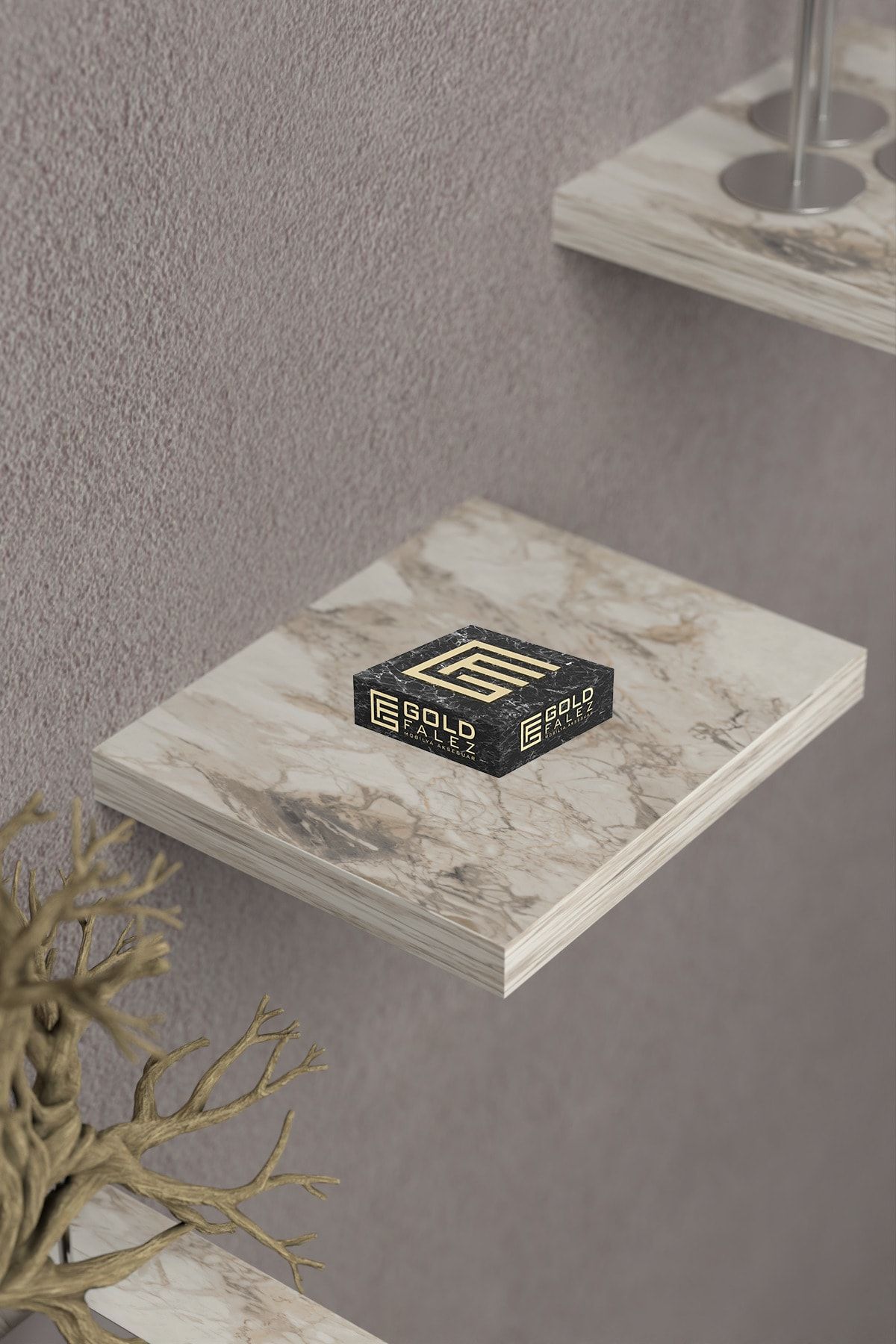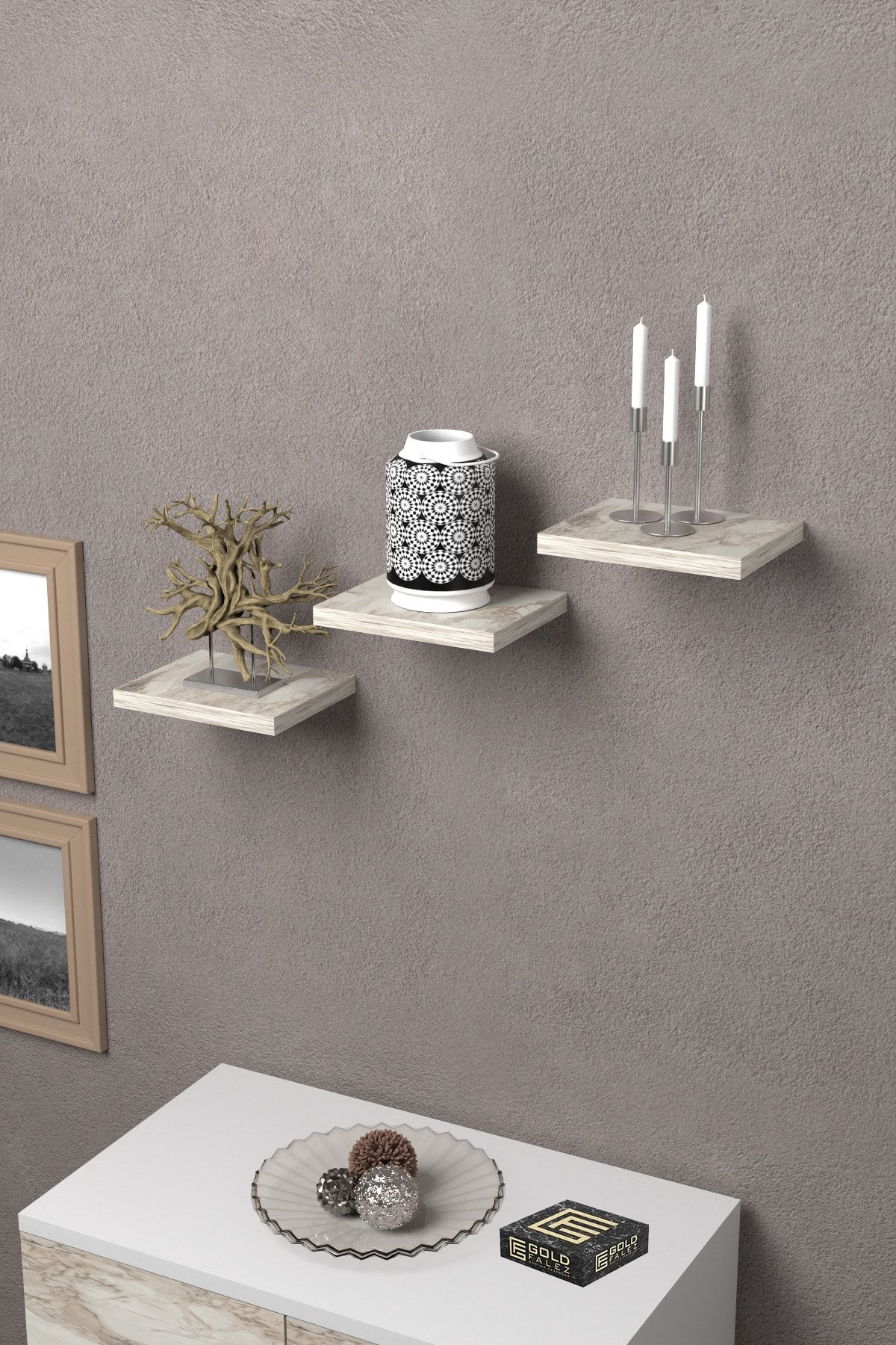 Duvar Rafı Dekoratif 3 Adet Çiçeklik Kare Efes