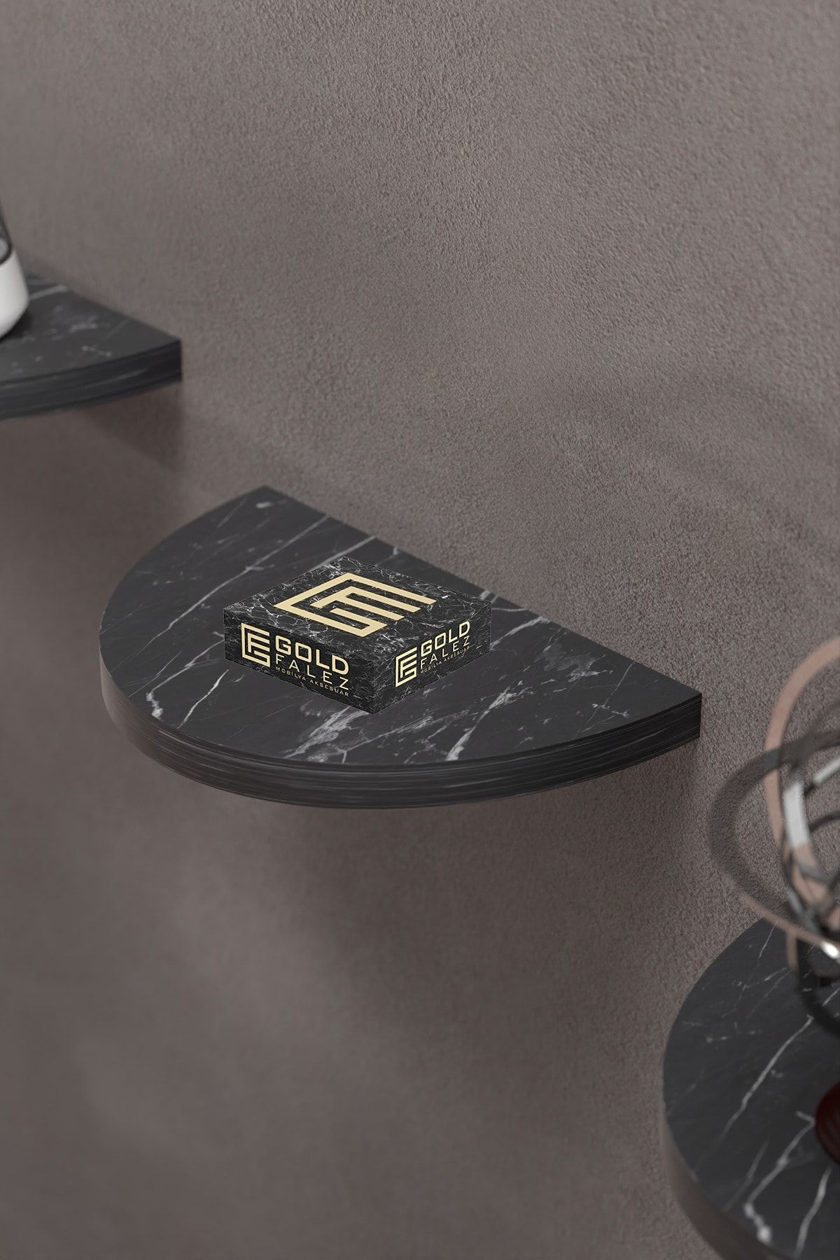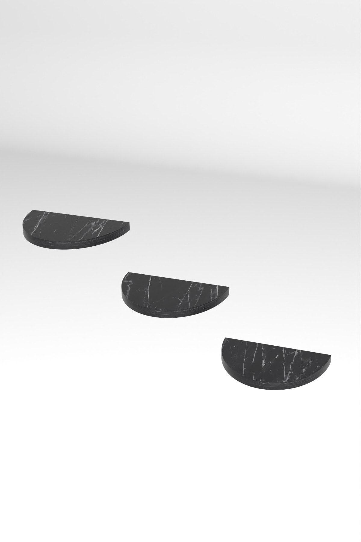 Duvar Rafı Dekoratif 3 Adet Çiçeklik Oval Siyah Mermer Desen