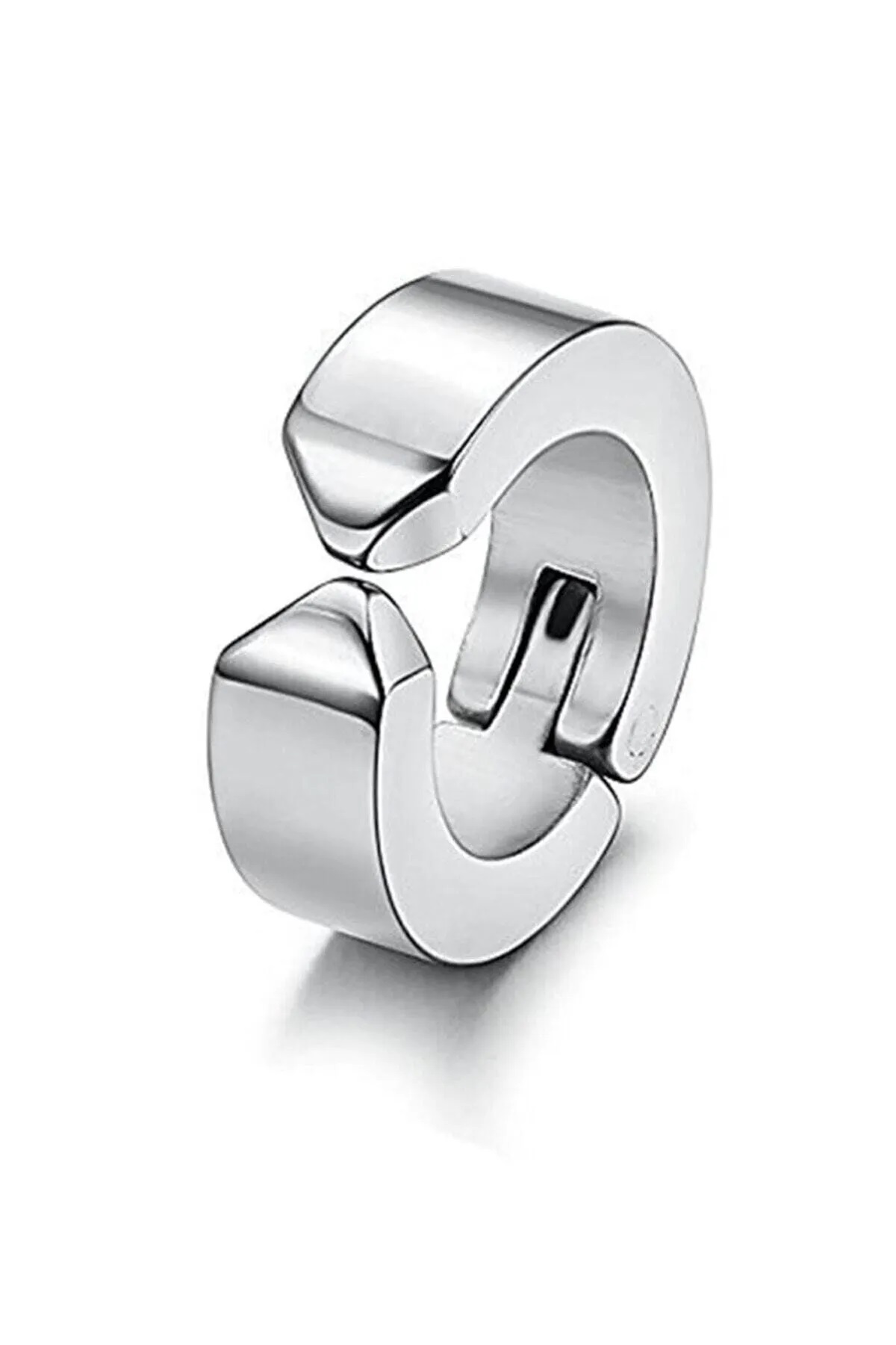 Erkek Küpesi - 2 Adet Çelik Kıstırmalı Küpe Paslanmaz Atmaz Çelik Gümüş Renk Küpe