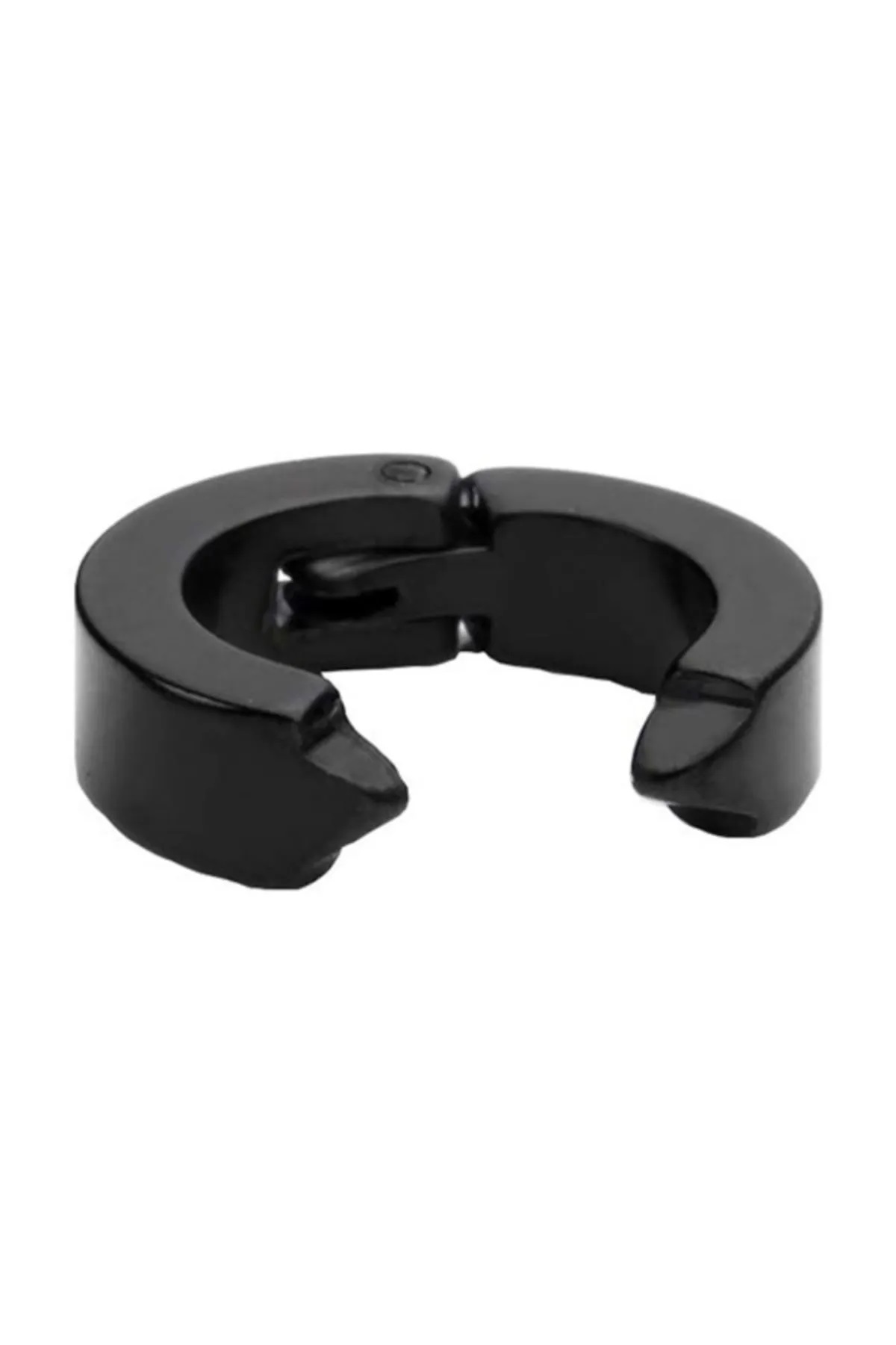 Erkek Küpesi - 2 Adet Siyah Çelik Kıstırmalı Küpe Paslanmaz Atmaz Çelik Siyah Küpe