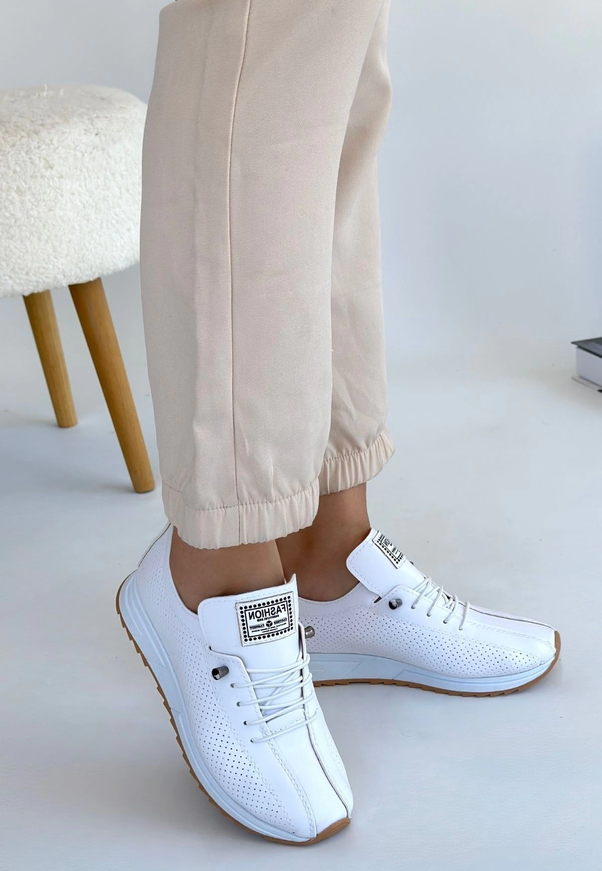 Fiert Beyaz Cilt Bağcıklı Spor Ayakkabı