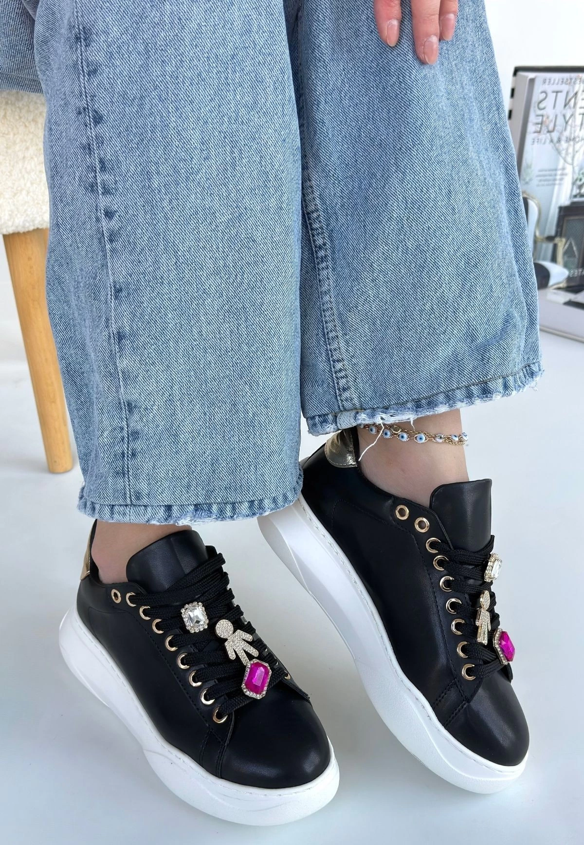 Gane Siyah Cilt Bağcıklı Spor Ayakkabı