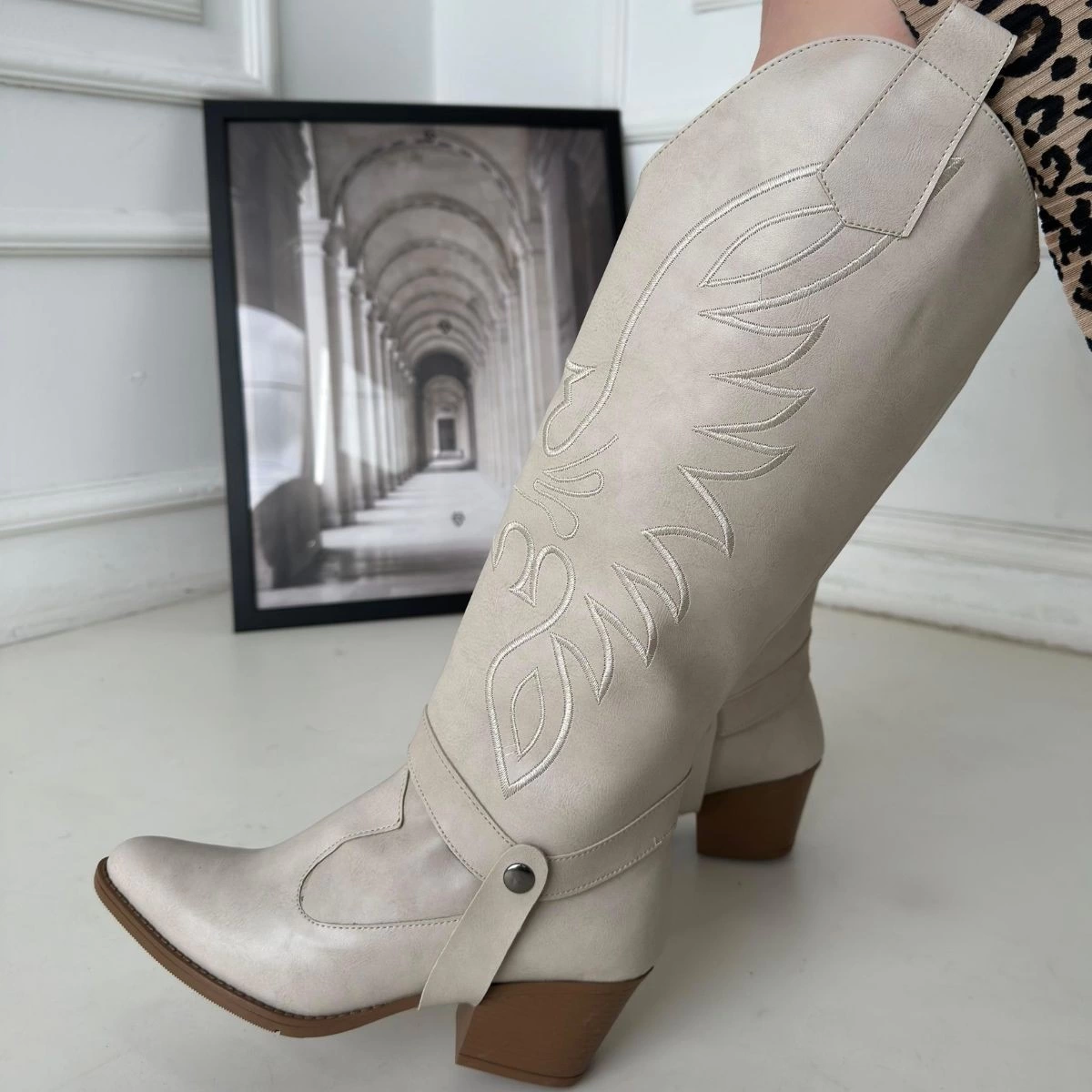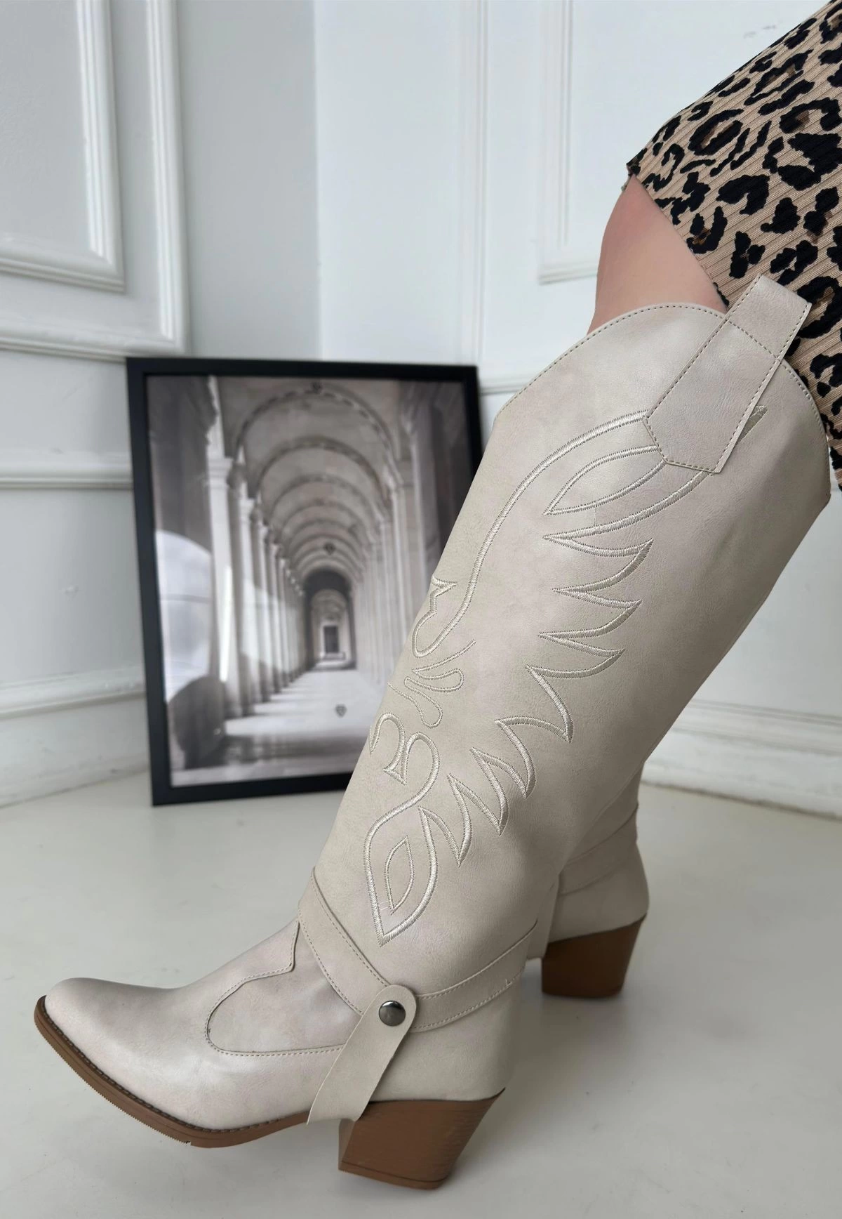 Jilla Bej Cilt Tak Çıkar Topuklu Bot Ve Çizme