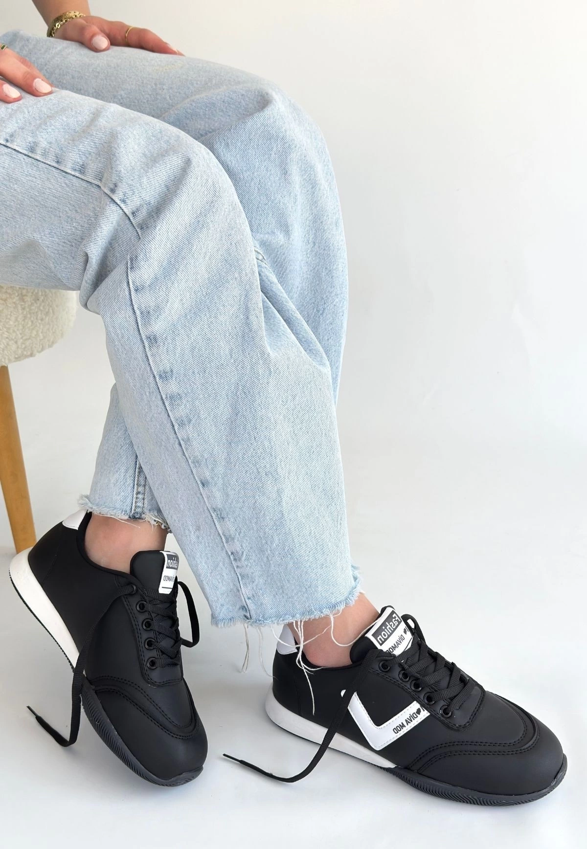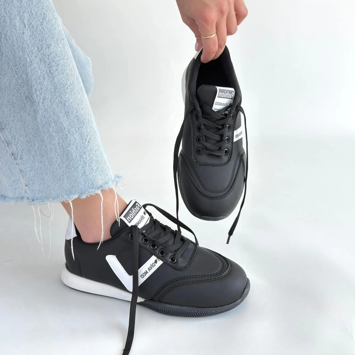 Jowen Siyah Cilt Beyaz Detaylı Bağcıklı Spor Ayakkabı