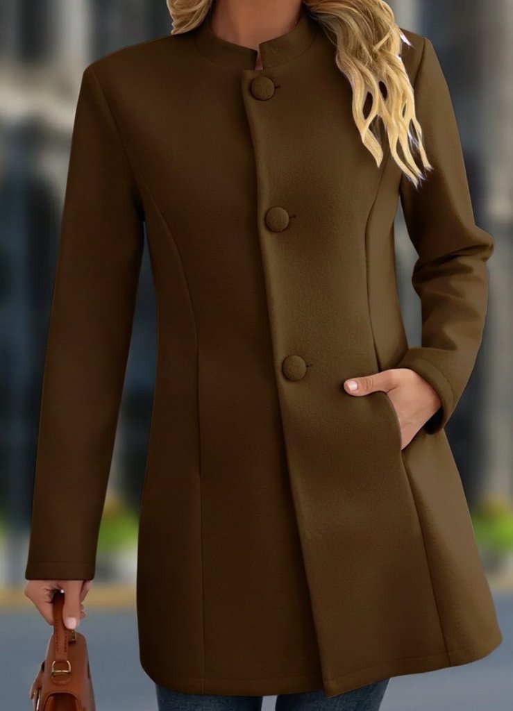 Kadın Uzun Kollu Hakim Yakalı önden Düğmeli Cep Detaylı Kısa Taba Kaşe Kaban