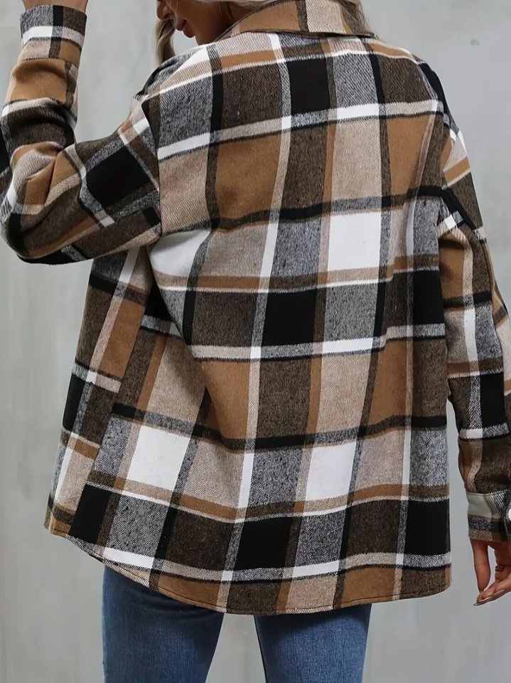 Kadın Uzun Kollu Kare Desenli önden Düğmeli Dokuma Gömlek