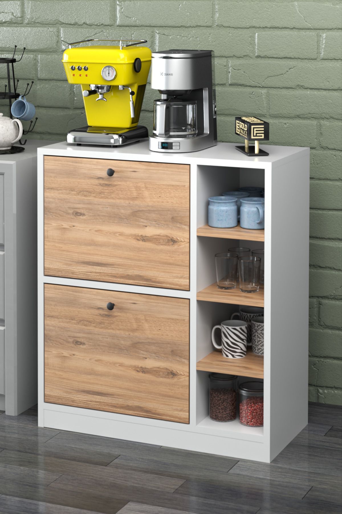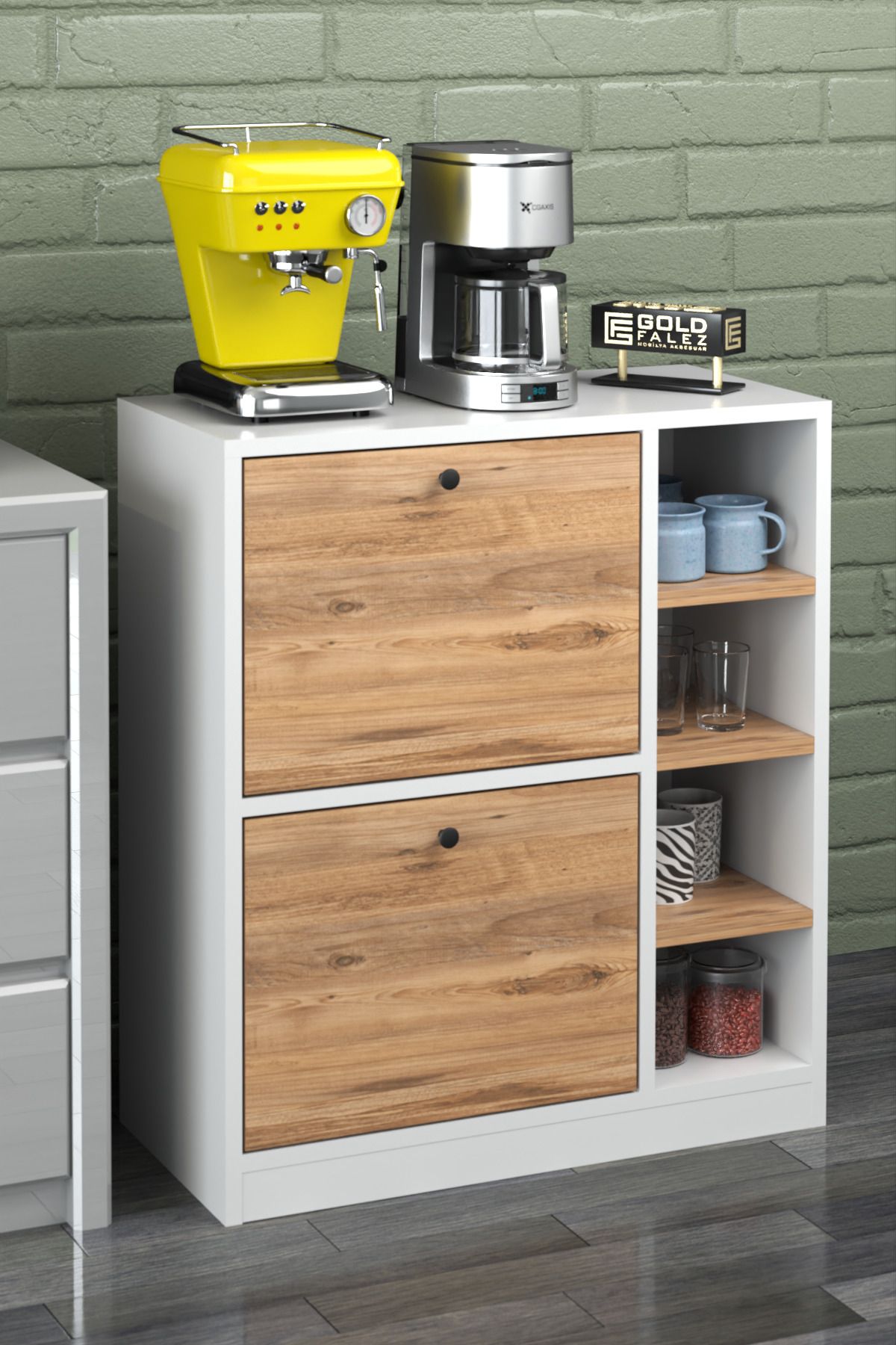 Kahve Köşesi Mutfak Rafı Çok Amaçlı Dolap Mutfak Stand Mutfak Bango Beyaz Ceviz