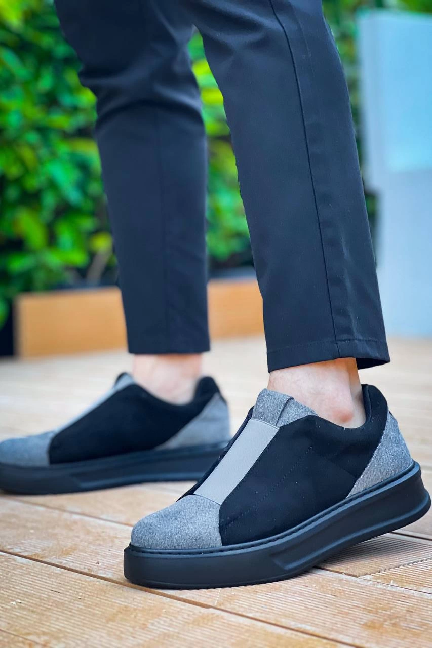 KB-007 Kuback Siyah Gri Siyah Yüksek Taban Tek Bant Bağcıksız Günlük Erkek