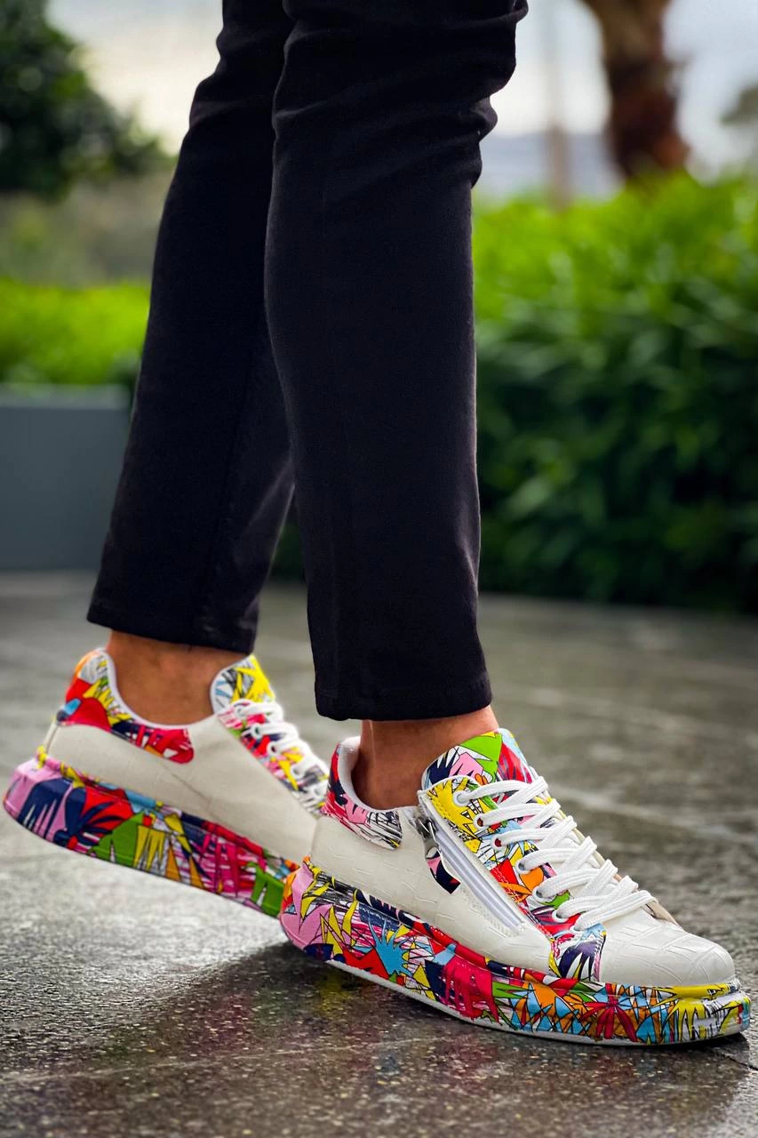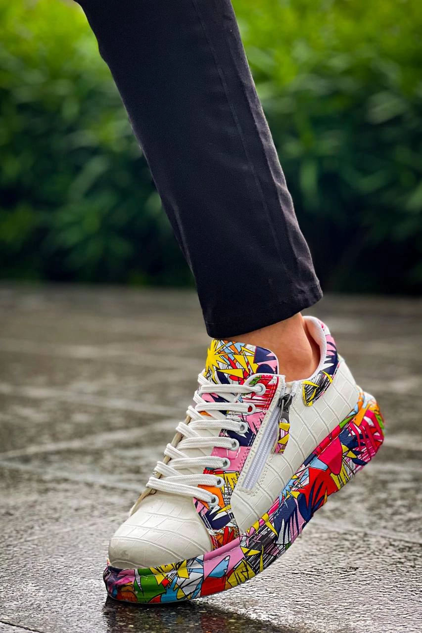 KB-02 Kuback Bağcıklı Crocodile Beyaz Kırmızı Günlük Erkek Ayakkabı