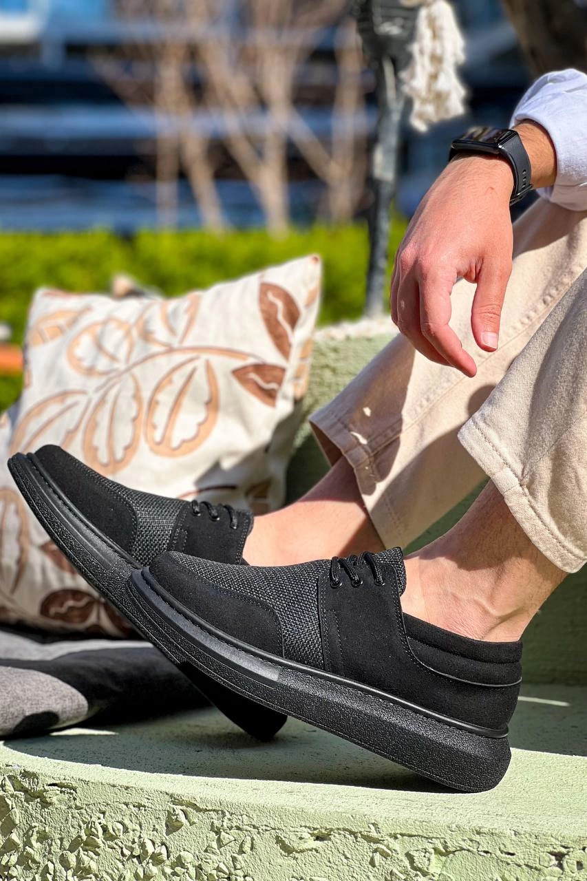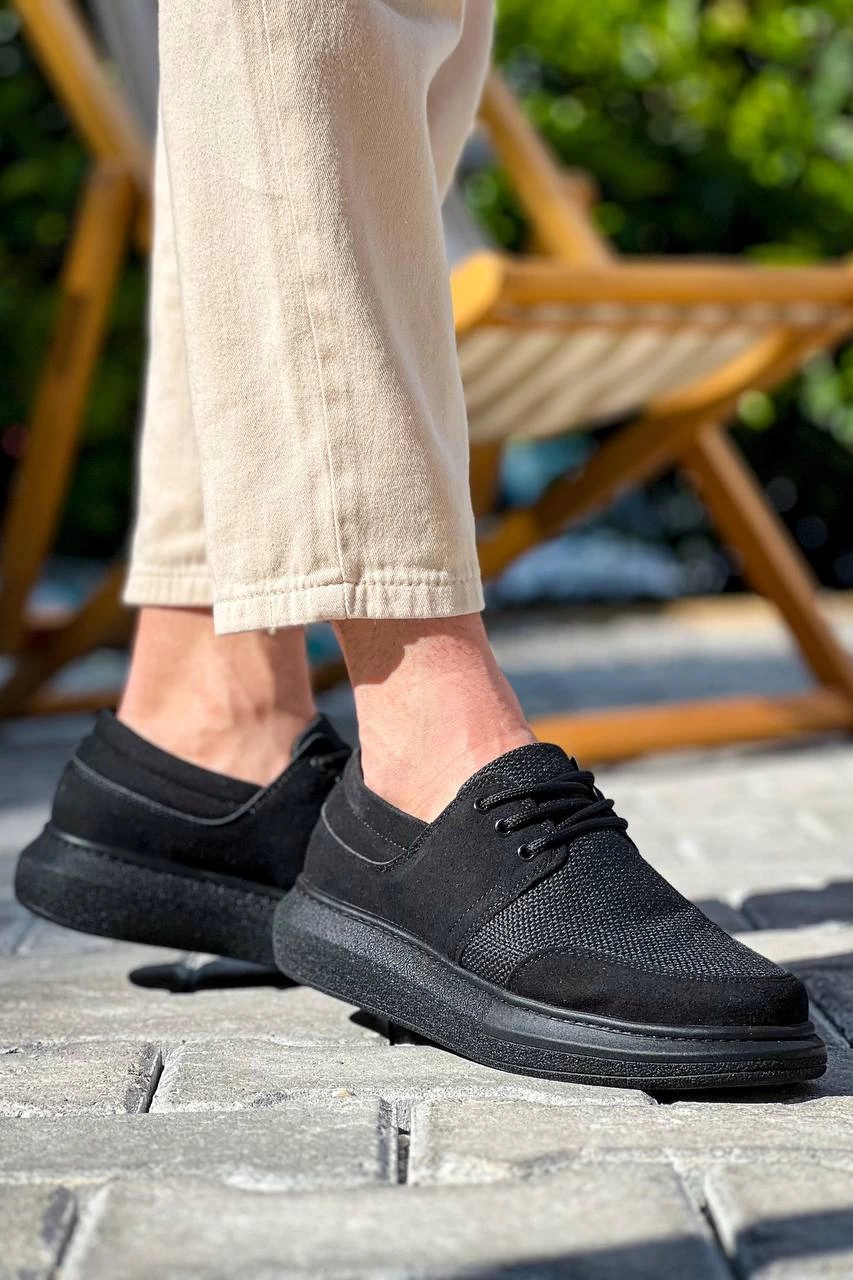 KB-042 Kuback Bağcıklı Siyah Deri Tozu Siyah Taban Günlük Erkek Ayakkabı