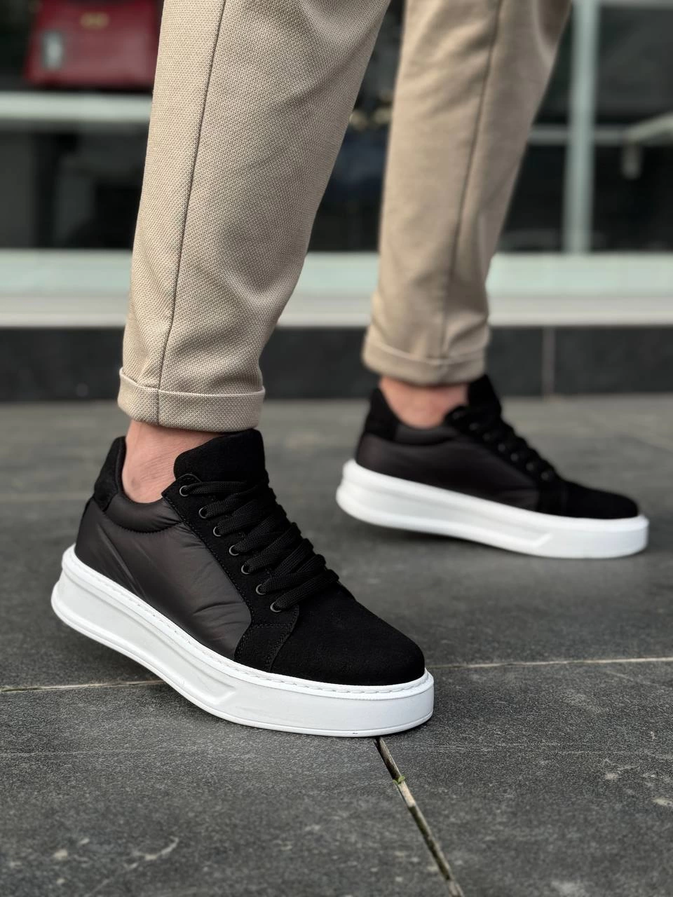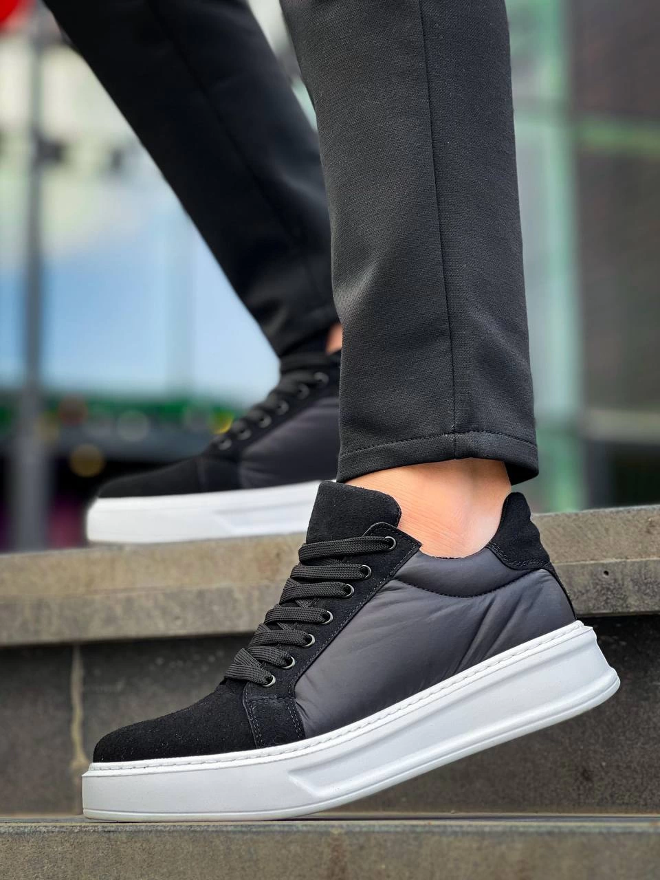 KB-046 Kuback Siyah Paraşüt Beyaz Yüksek Taban Günlük Spor Ayakkabı