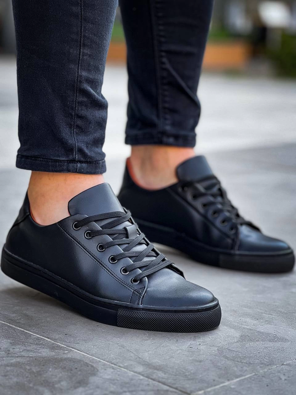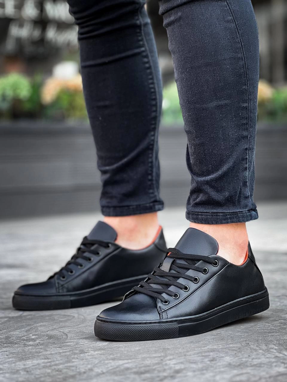 KB-122 Kuback Siyah Cilt Siyah Yüksek Taban Bağcıklı Günlük Erkek Ayakkabı