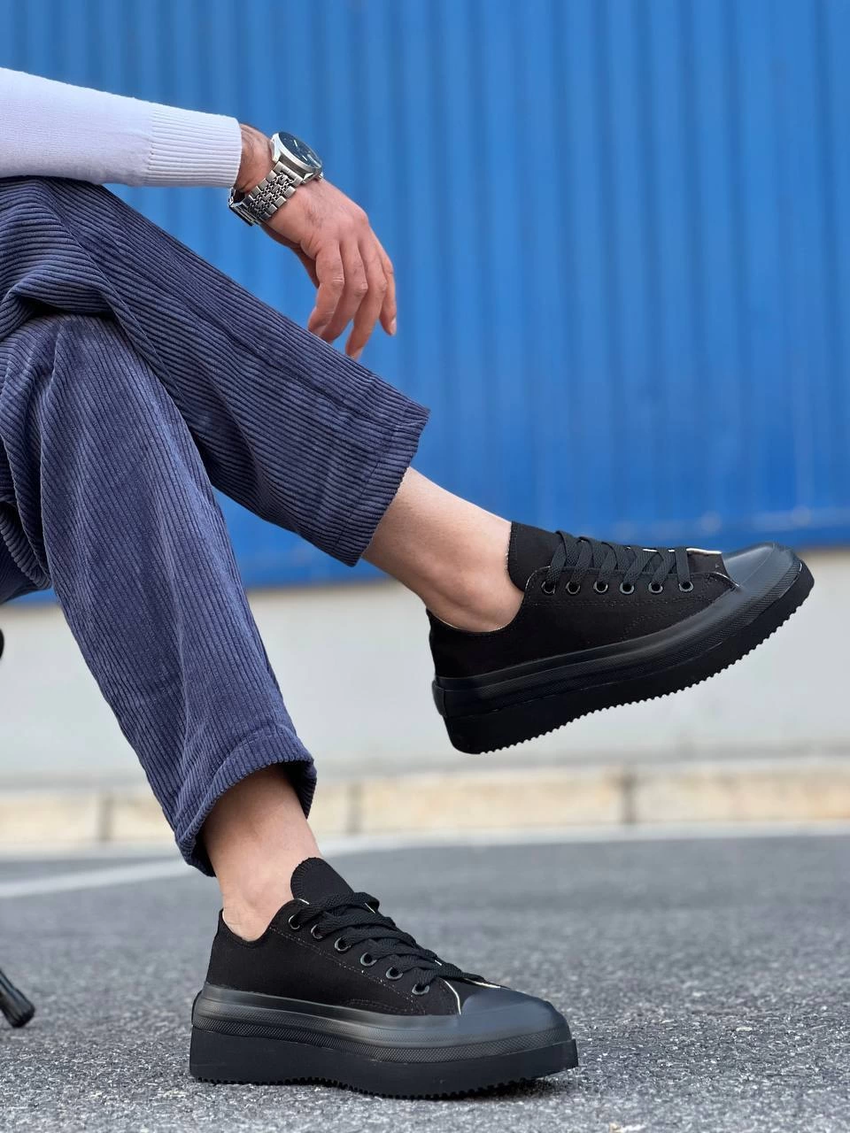 KB-CX-3 Kuback Kısa Siyah Keten Siyah Yüksek Taban Spor Ayakkabı