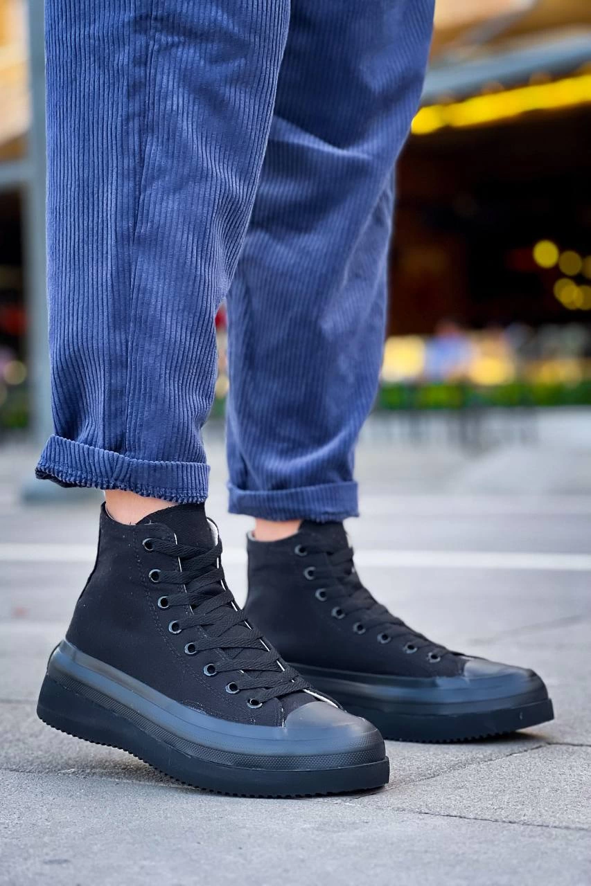 KB-CX-3 Kuback Uzun Siyah Keten Siyah Yüksek Taban Spor Ayakkabı