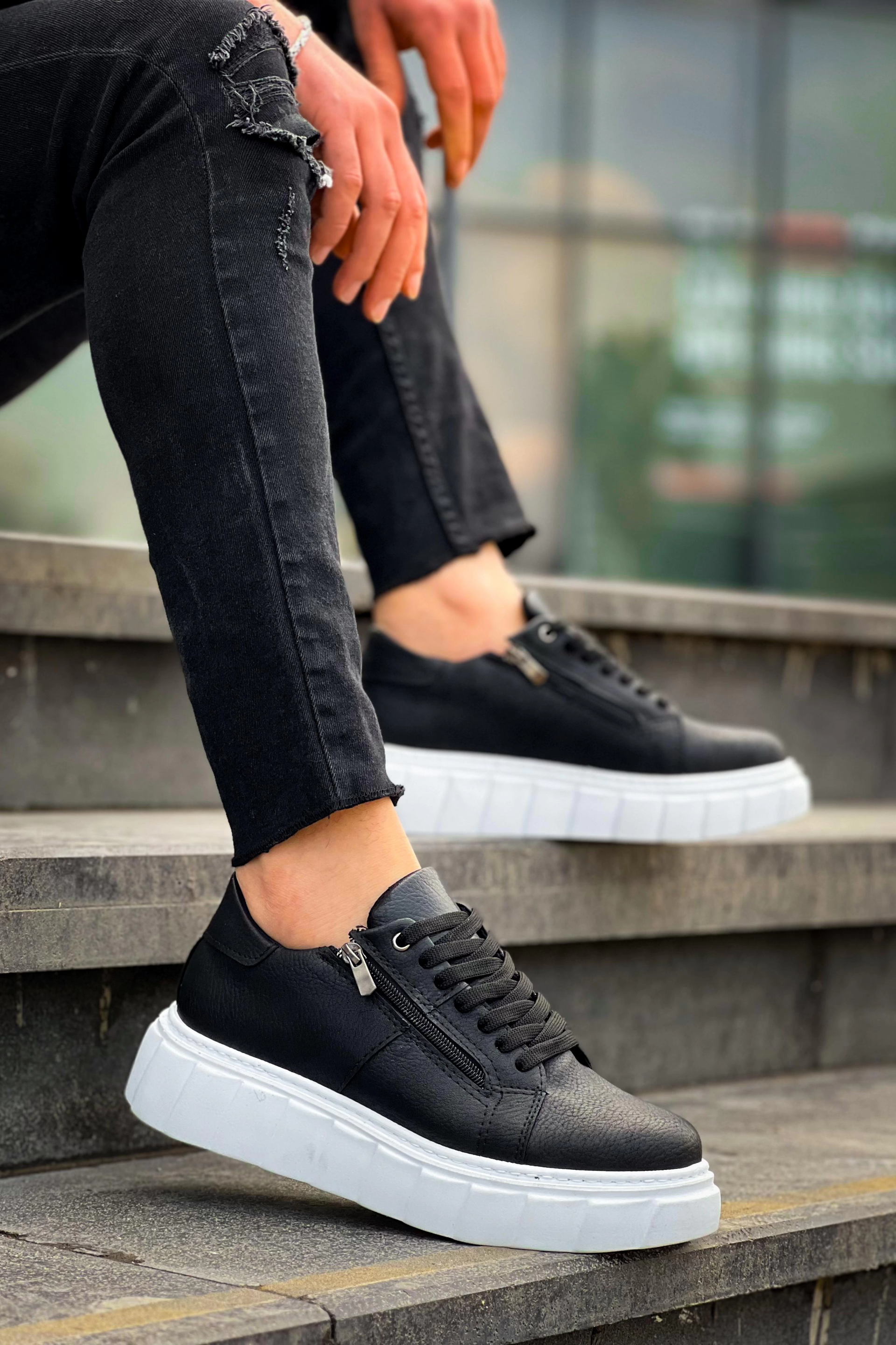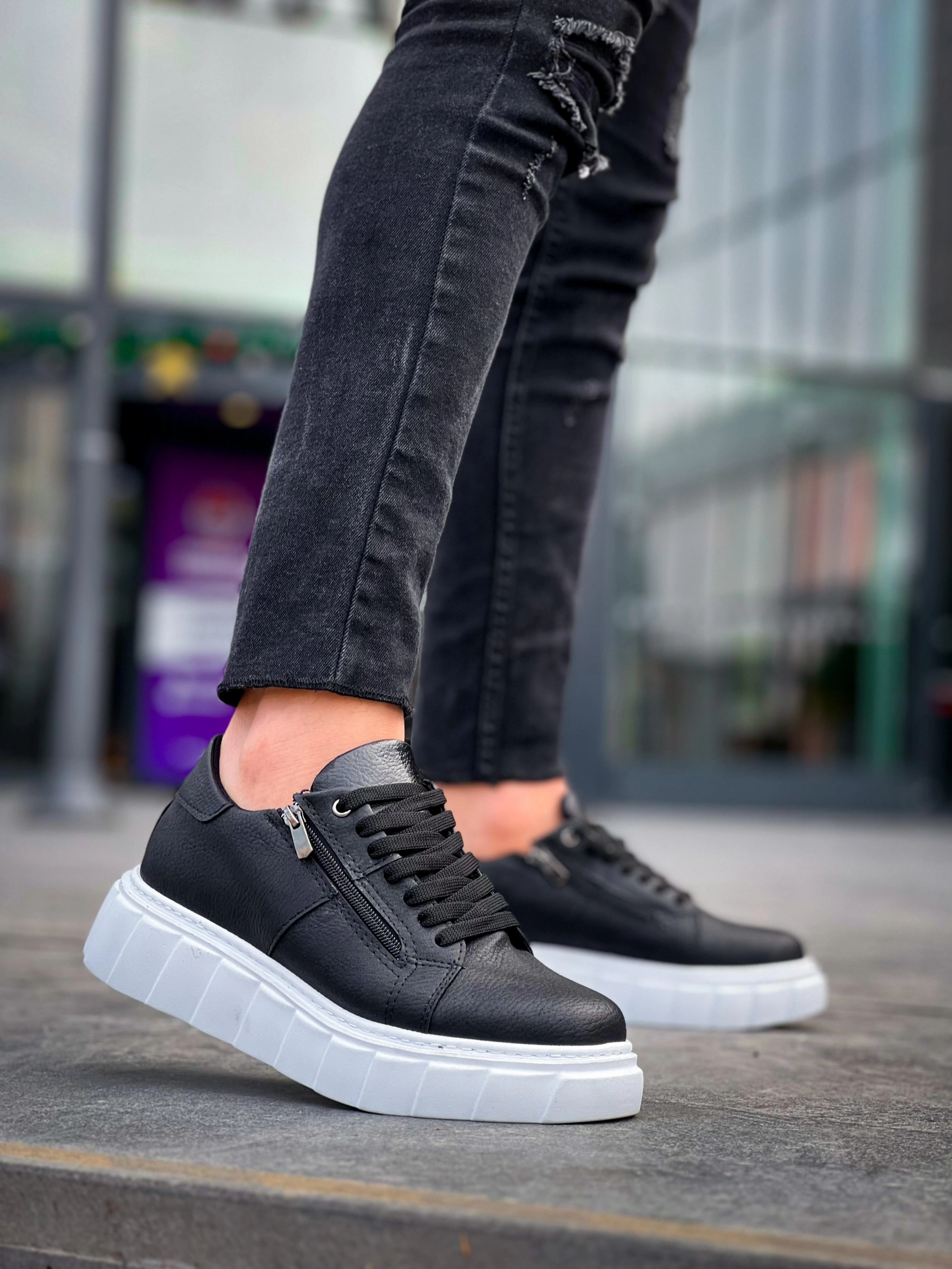 KB-X155 Kuback Siyah Cilt Detaylı Beyaz Yüksek Taban Günlük Spor Ayakkabı