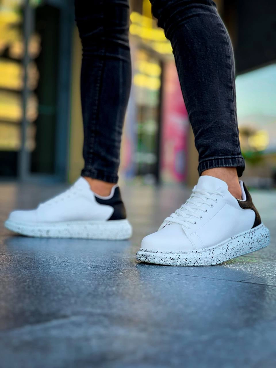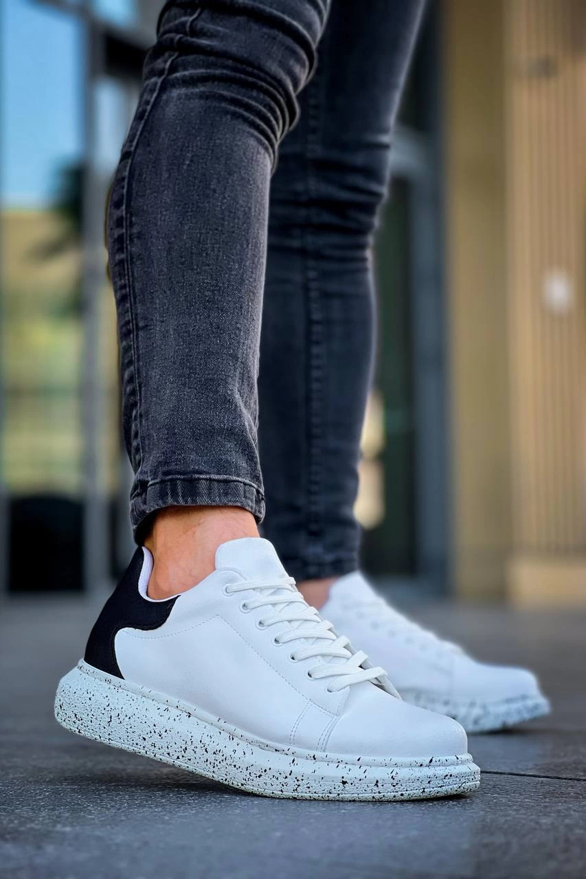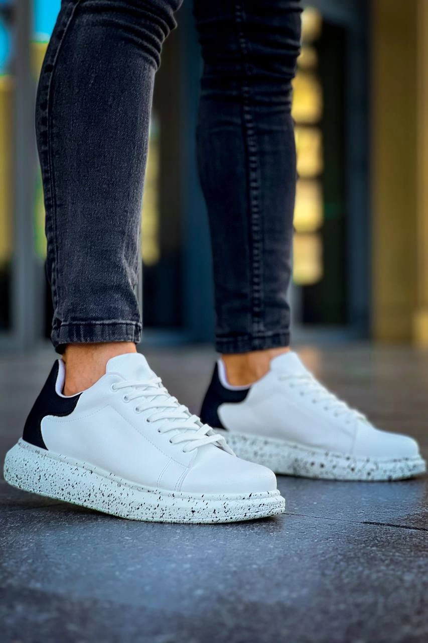 KB-X500 Kuback Beyaz Siyah Yüksek Taban Bağcıklı Günlük Erkek Ayakkabı