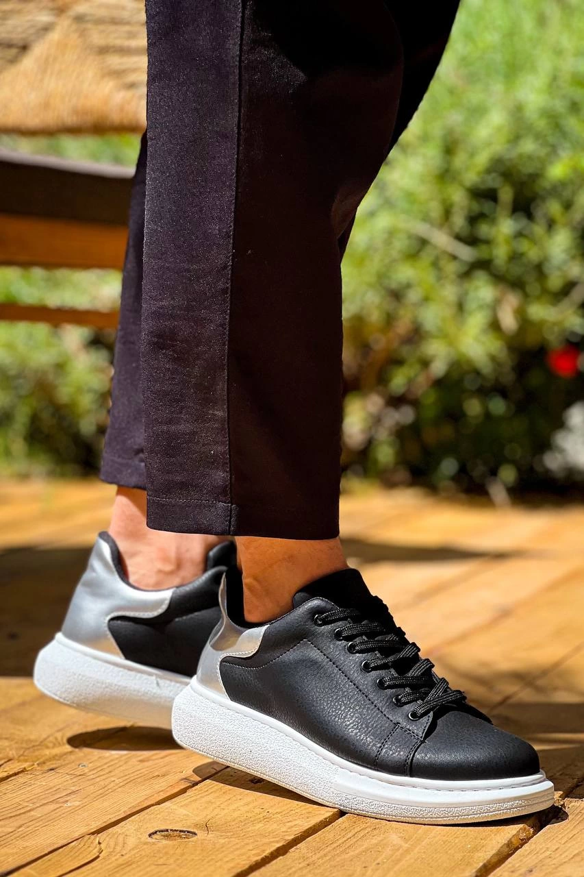KB-X500 Kuback Siyah Gümüş Yüksek Taban Bağcıklı Günlük Erkek Ayakkabı