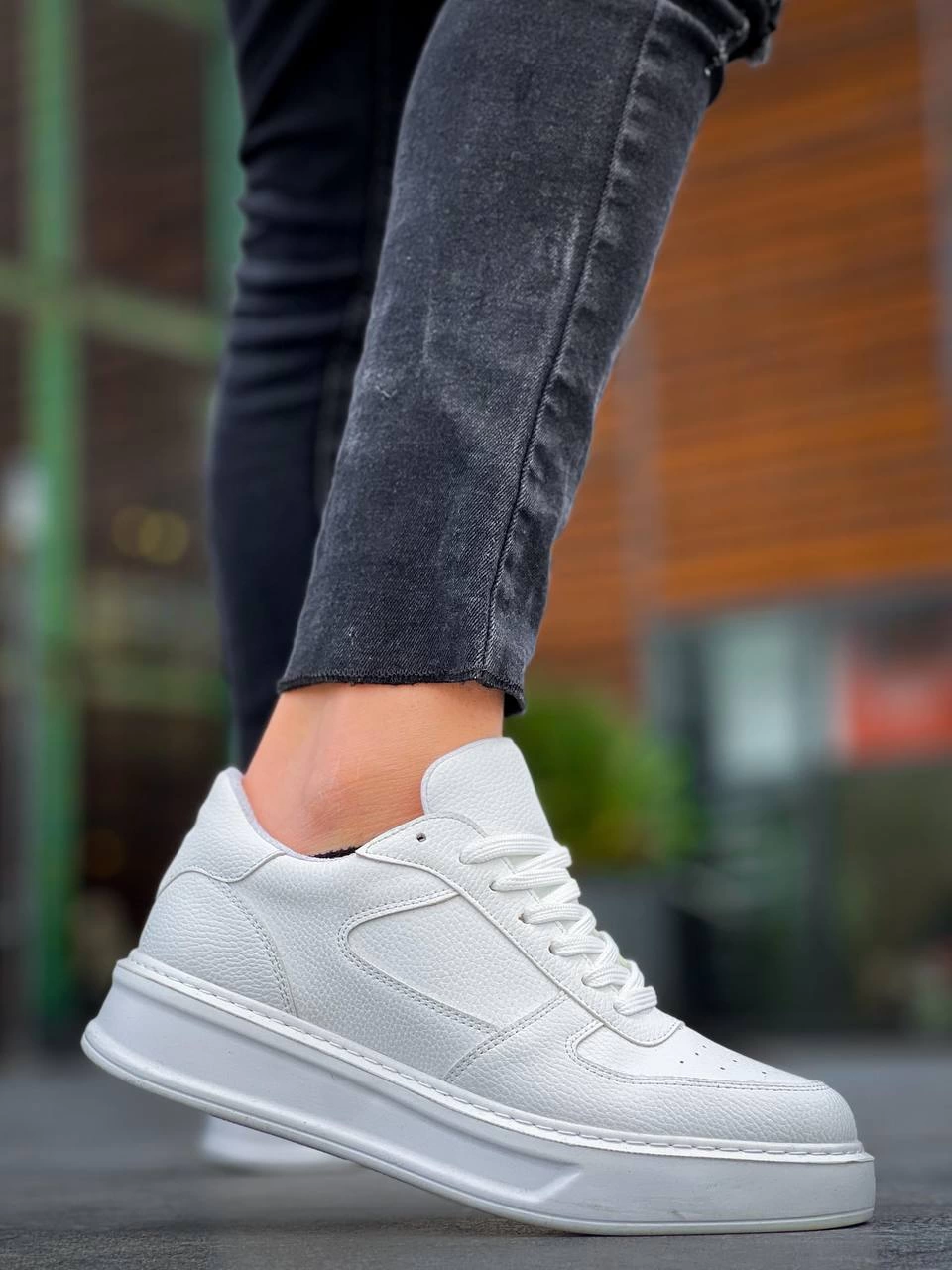 KB-X8 Kuback Beyaz Cilt Beyaz Yüksek Taban Günlük Spor Ayakkabı