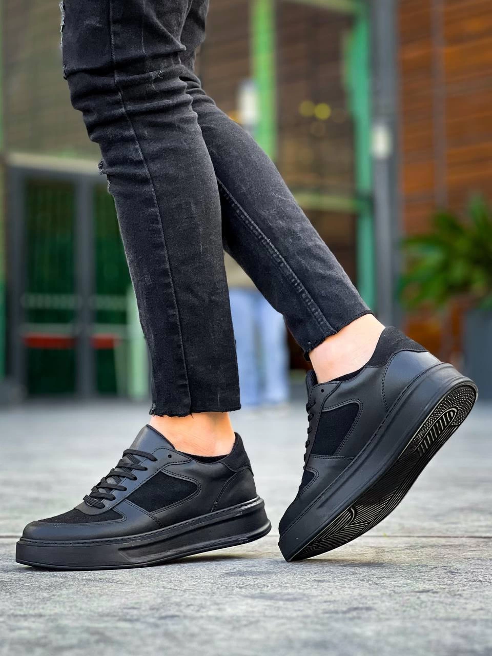 KB-X8 Kuback Siyah Cilt Siyah Süet Detaylı Siyah Yüksek Taban Günlük Spor Ayakkabı
