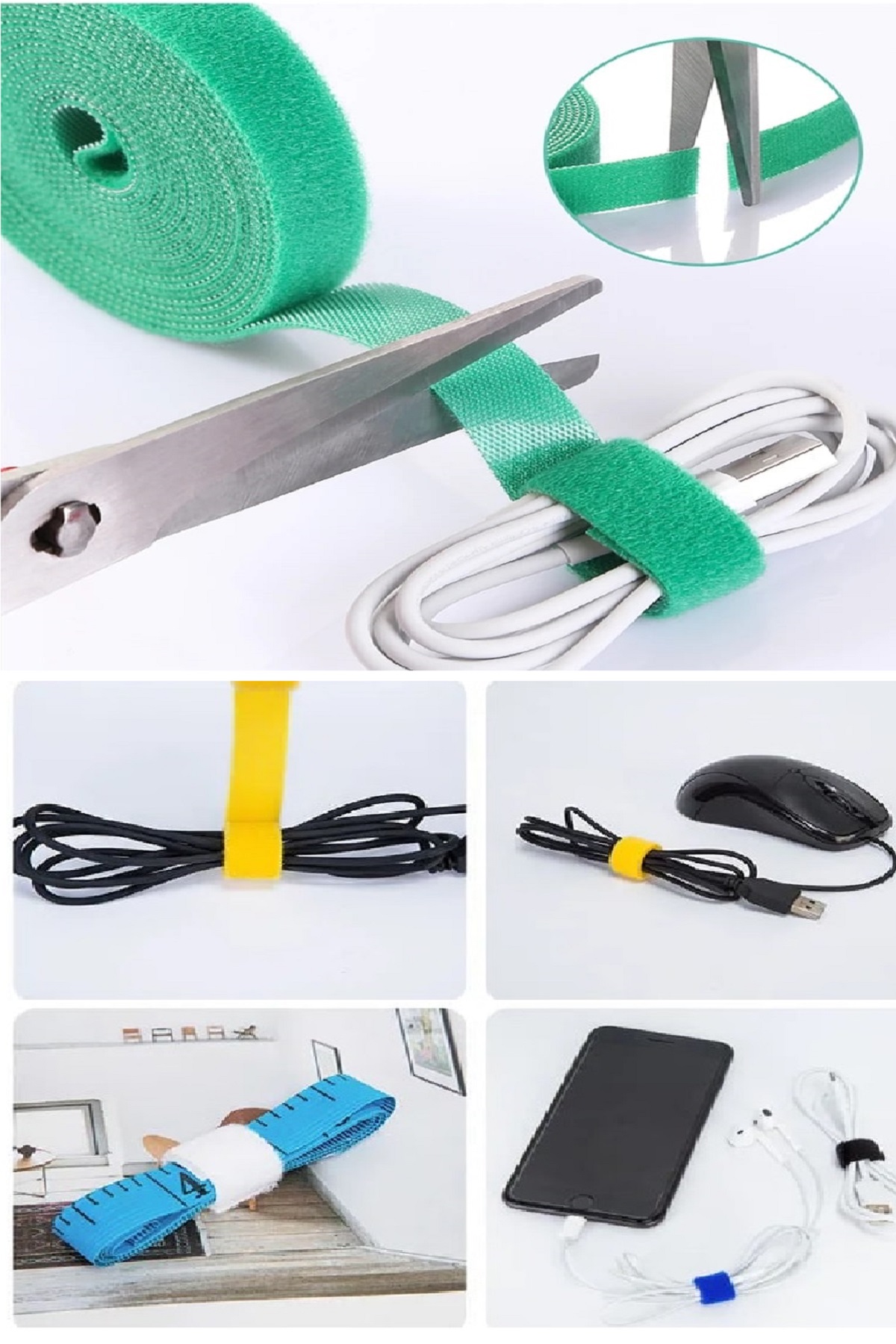 Kesilebilir Kablo Tutucu Kulaklık Fare Airfry Ev Ofis İçin Cırt Sabitleyici Kablo Düzenleyici