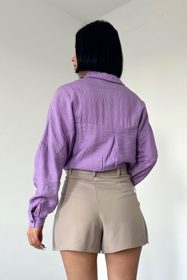 Lila Kristal Taşlı Gömlek