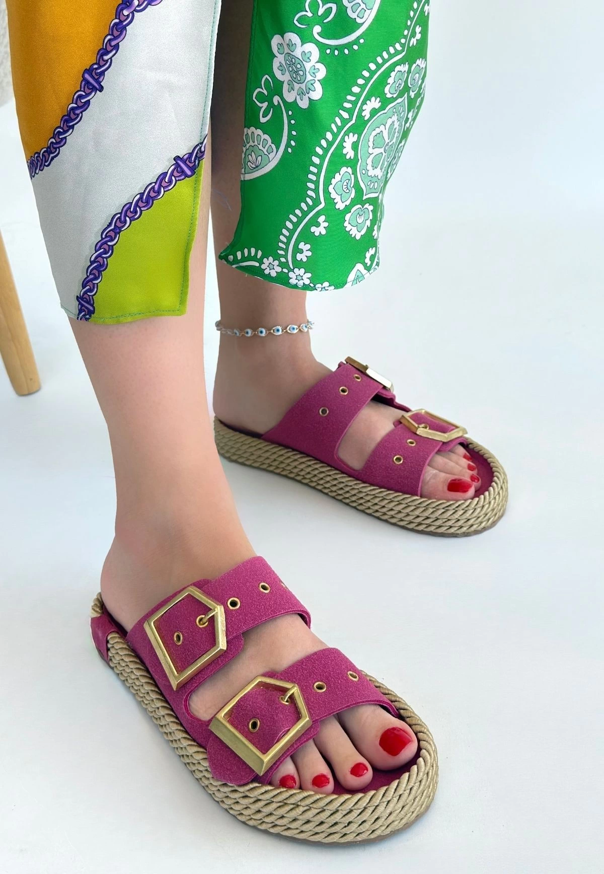 Loera Pemba Nubuk Çift Tokalı Terlik