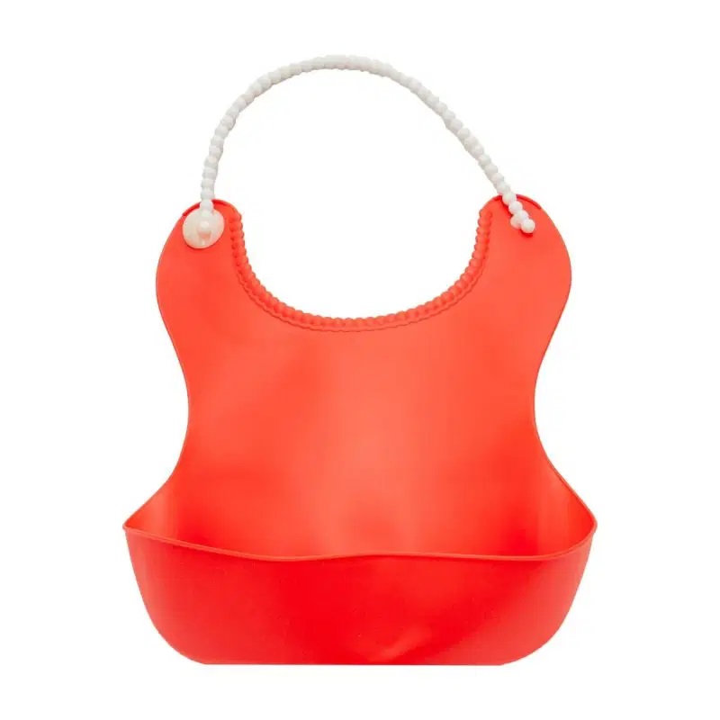 Pelikan Silikon Mama Önlüğü / Silikon Hazneli Bebek Mama Önlüğü - Kırmızı