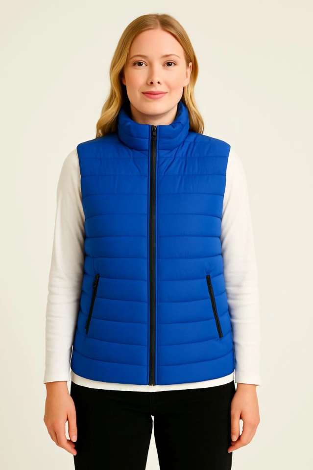 Şişme Fermuarlı Yelek Su Itici Kapitone Astarlı Kumaş Cepli Hafif Kışlık Spor Rahat Kalıp - Saks Mavisi