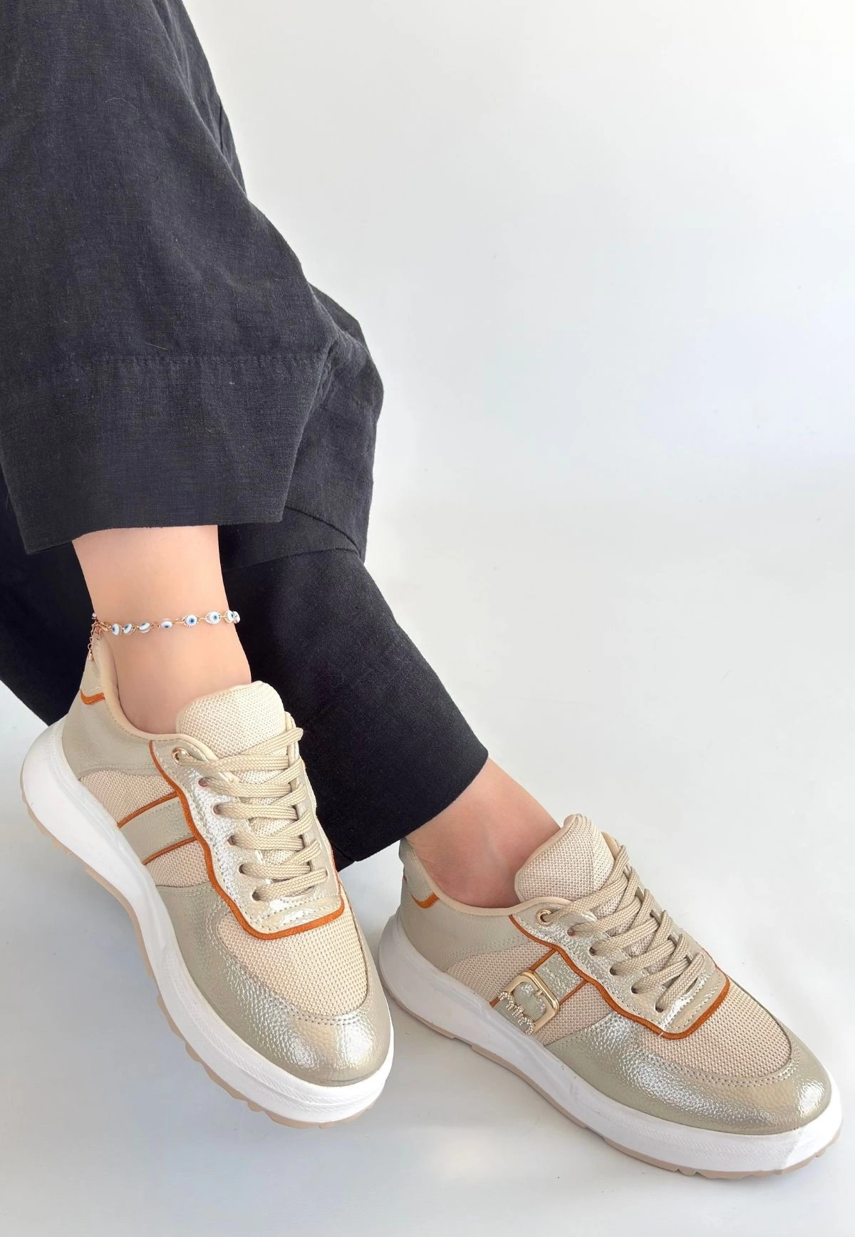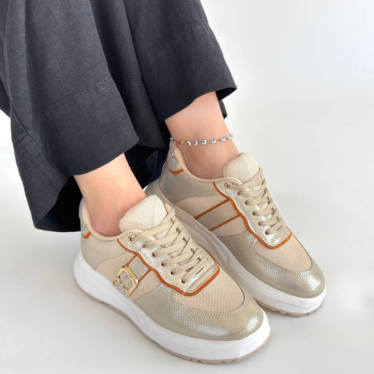 Tanwe Bej Cilt Bağcıklı Spor Ayakkabı
