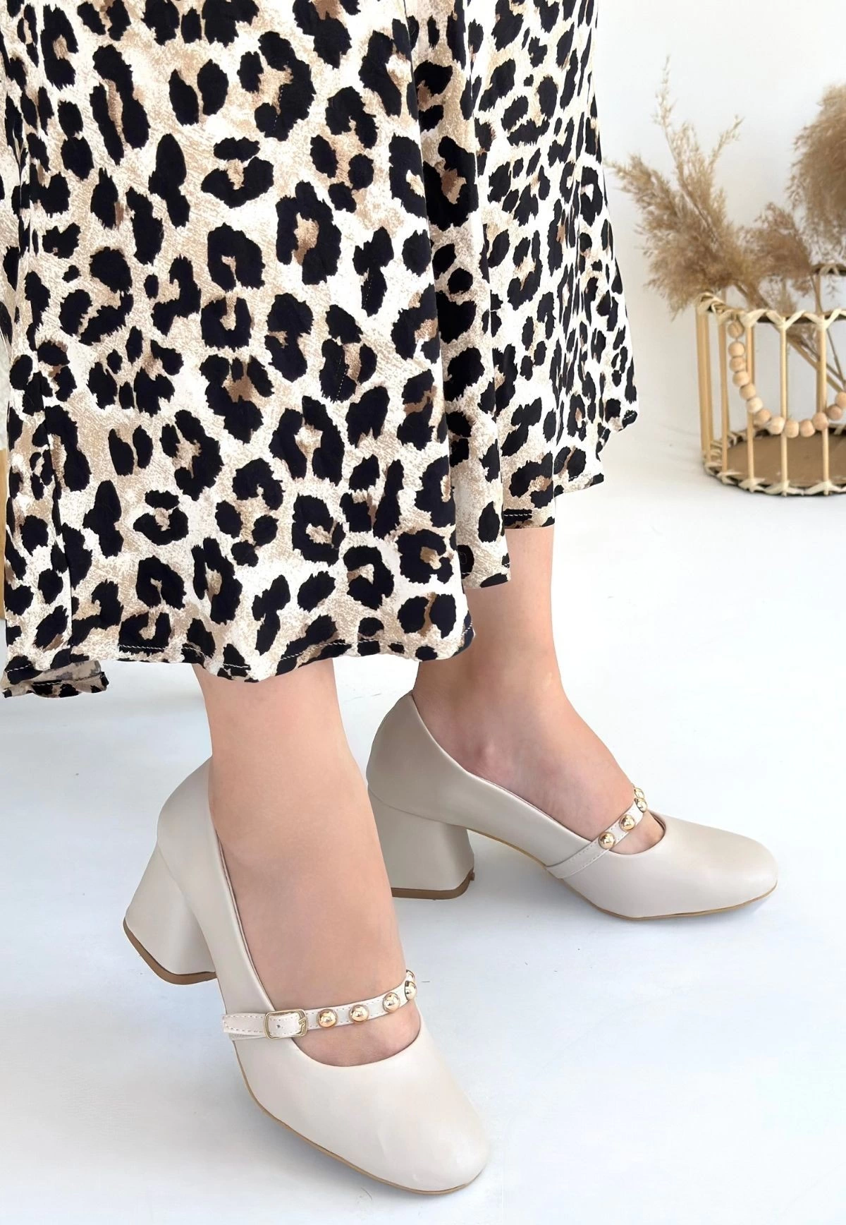 Tino Bej Cilt Topuklu Ayakkabı
