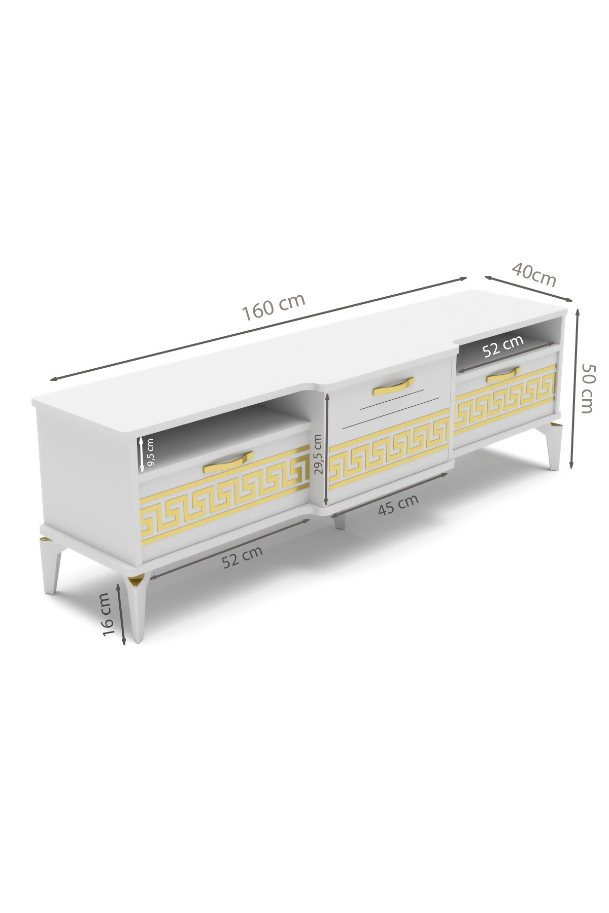 Tv Sehpası Tv Ünitesi 160 Cm Gold Beyaz Mistral 5072