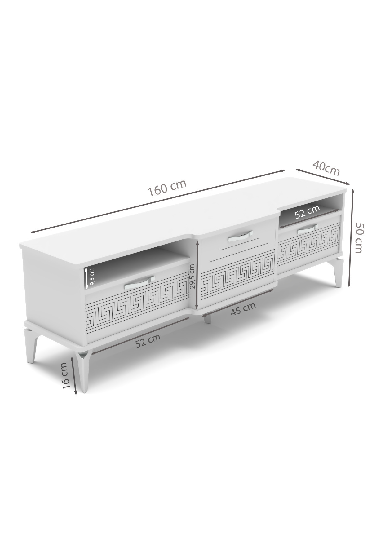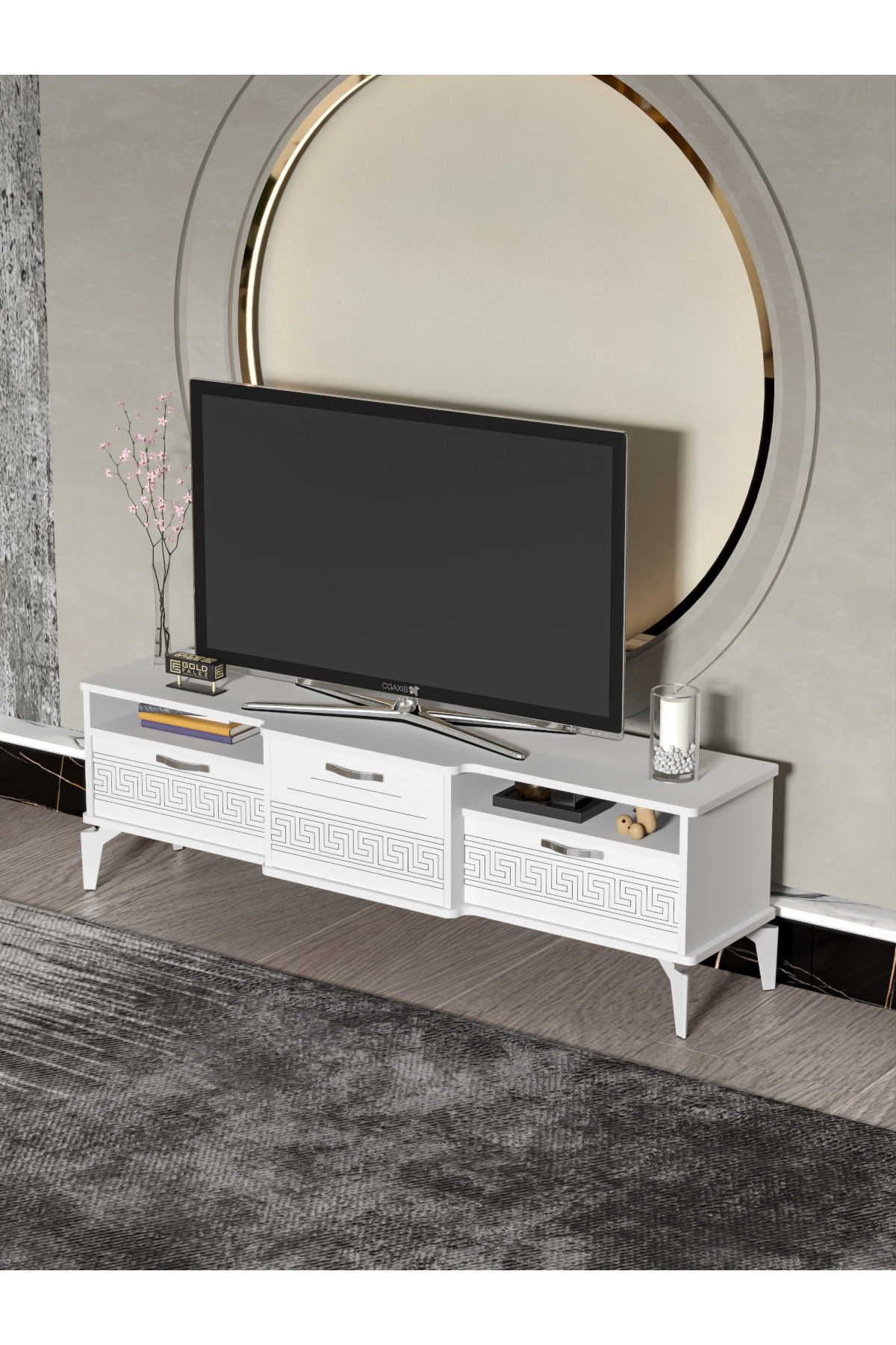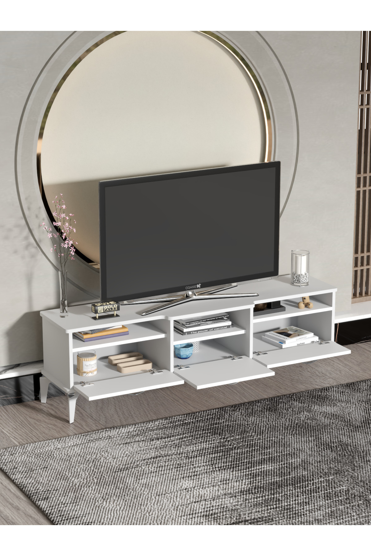 Tv Sehpası Tv Ünitesi 160 Cm Gümüş Beyaz Mistral 5073