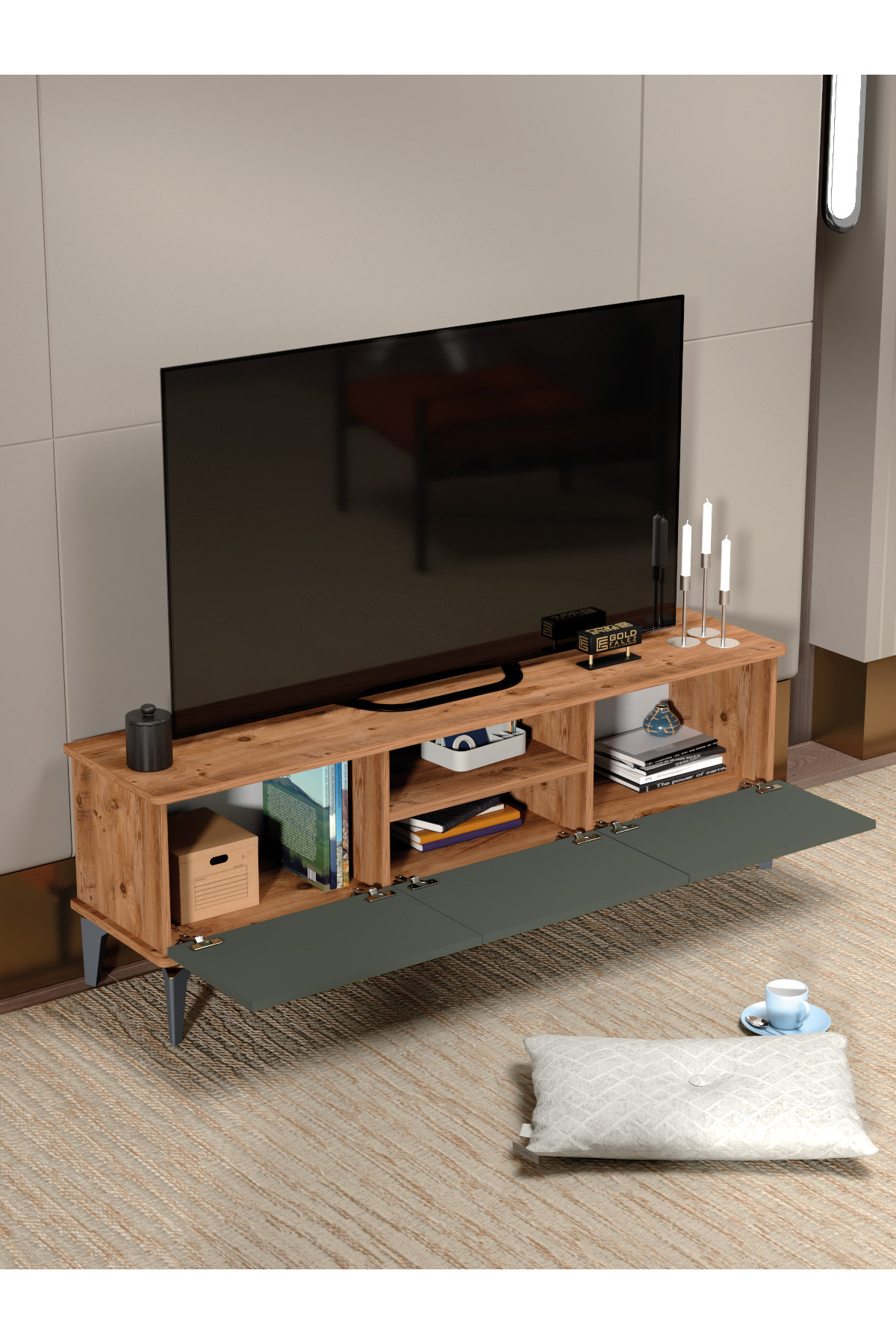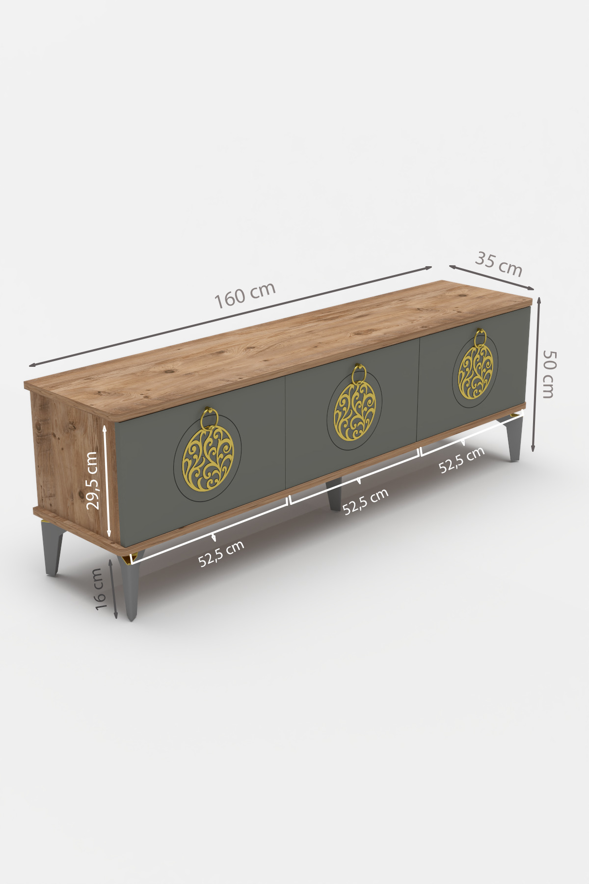 Tv Sehpası Tv Ünitesi Atlantik Çam Antrasit Gold 160 Cm Saraylı 5060
