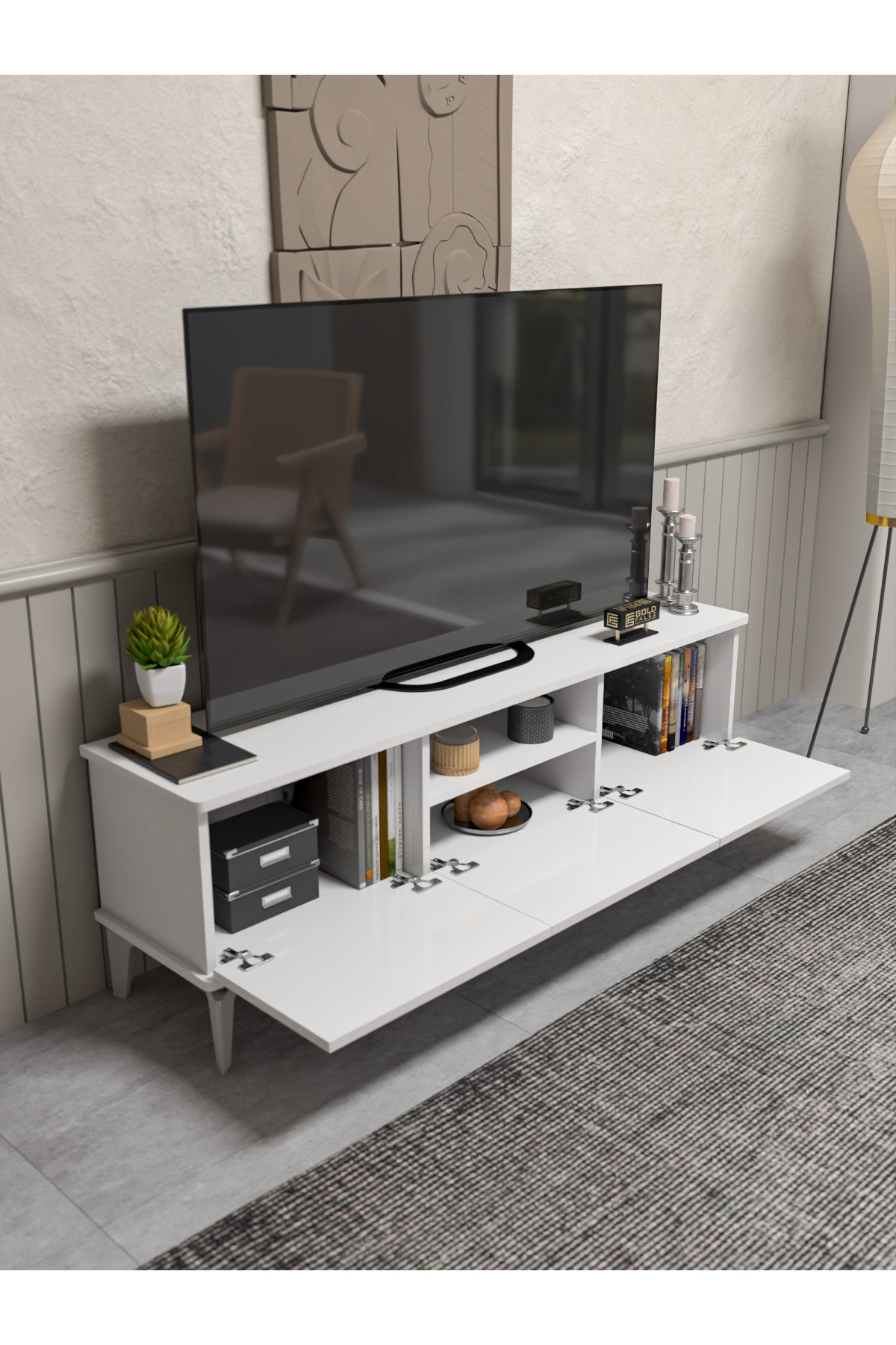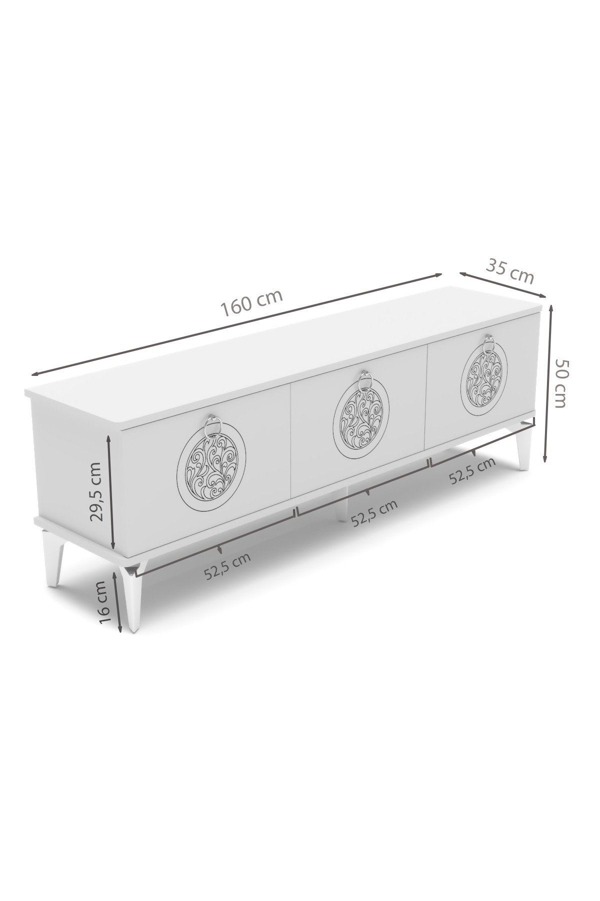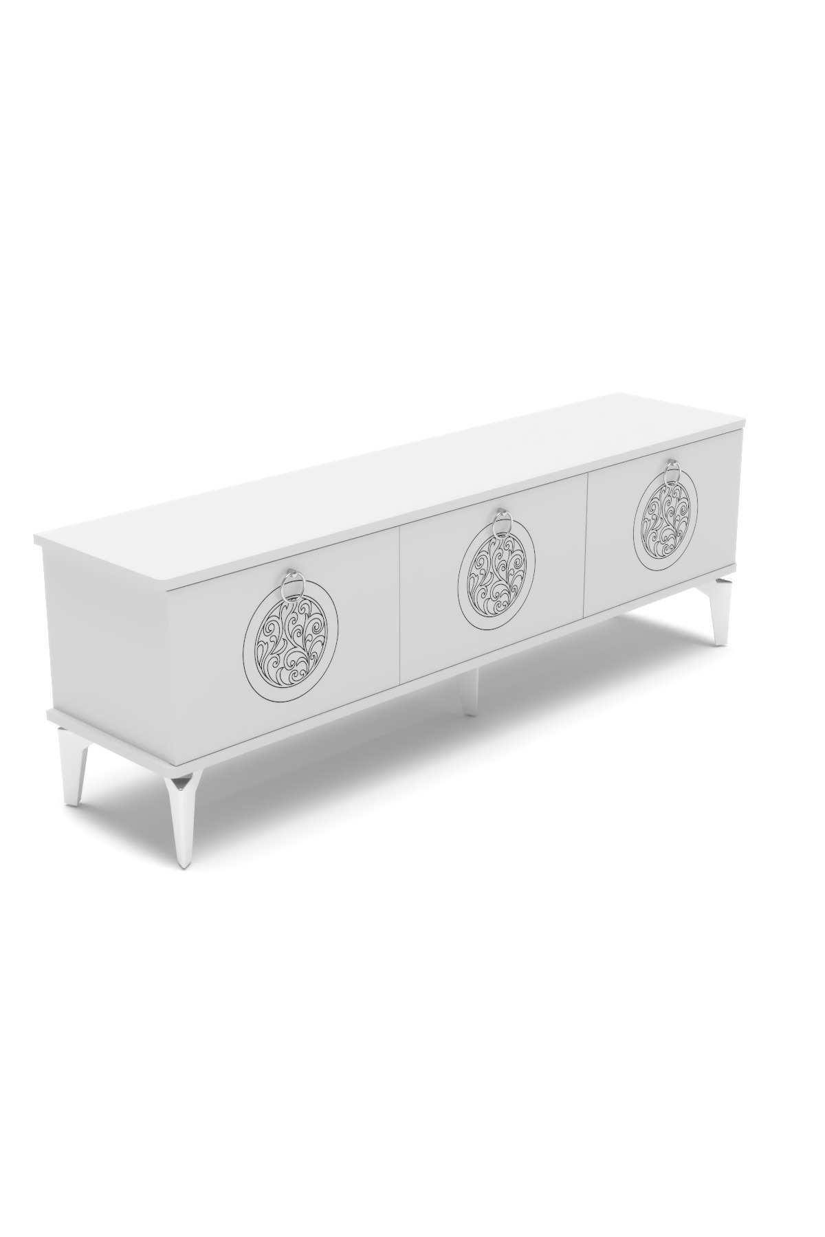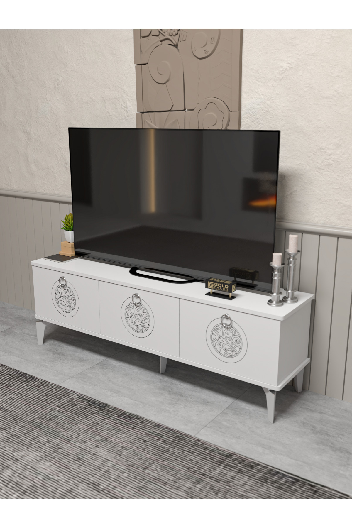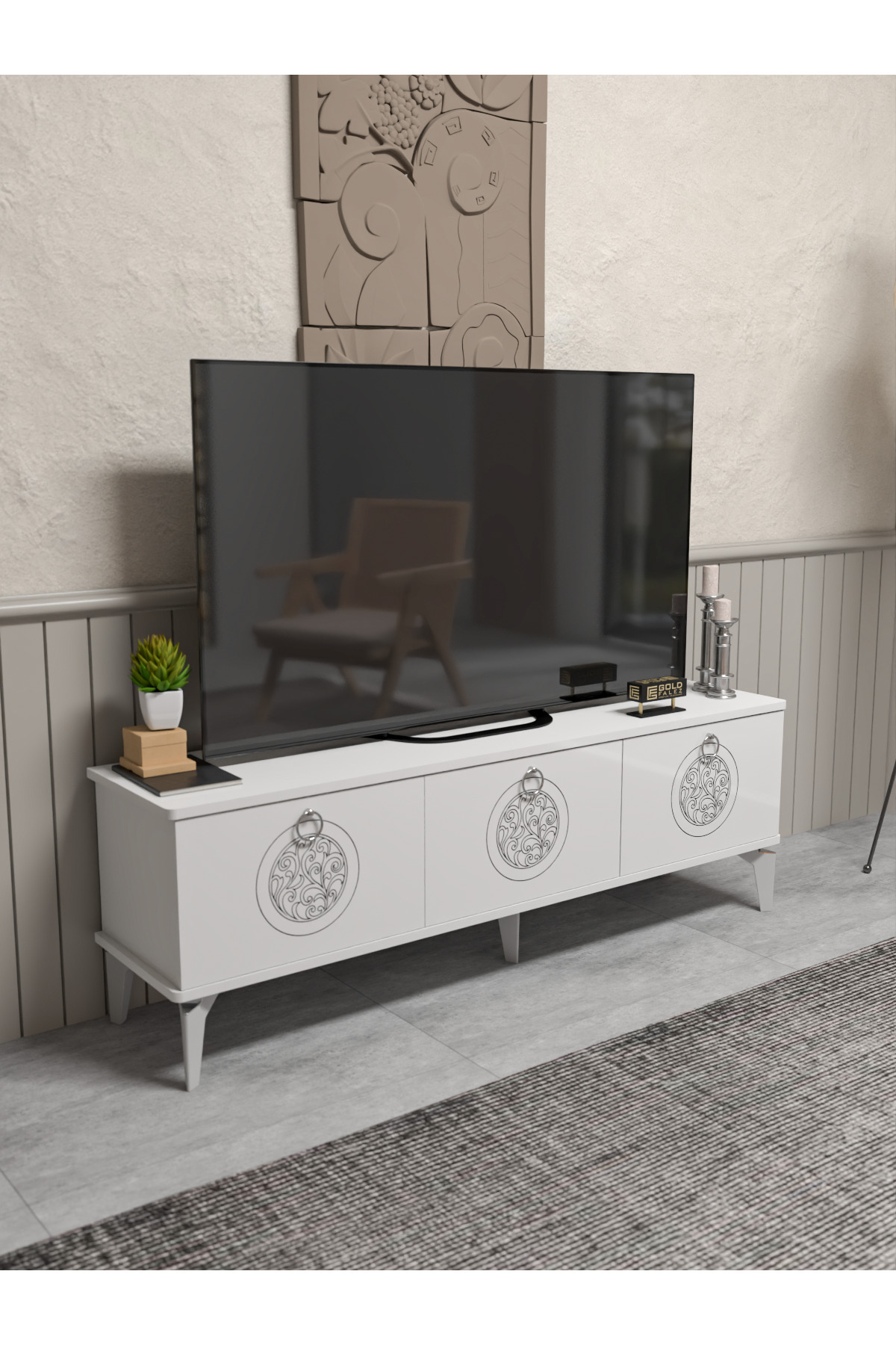Tv Sehpası Tv Ünitesi Beyaz Gümüş 160 Cm Saraylı 5063