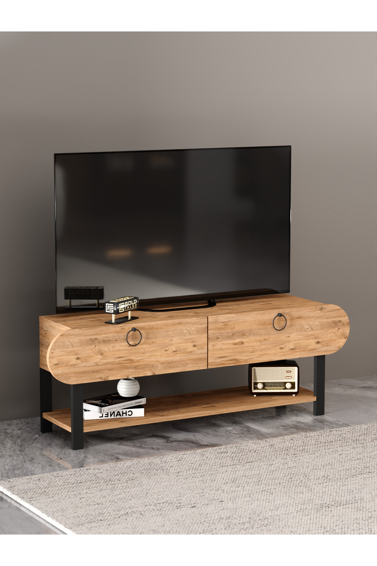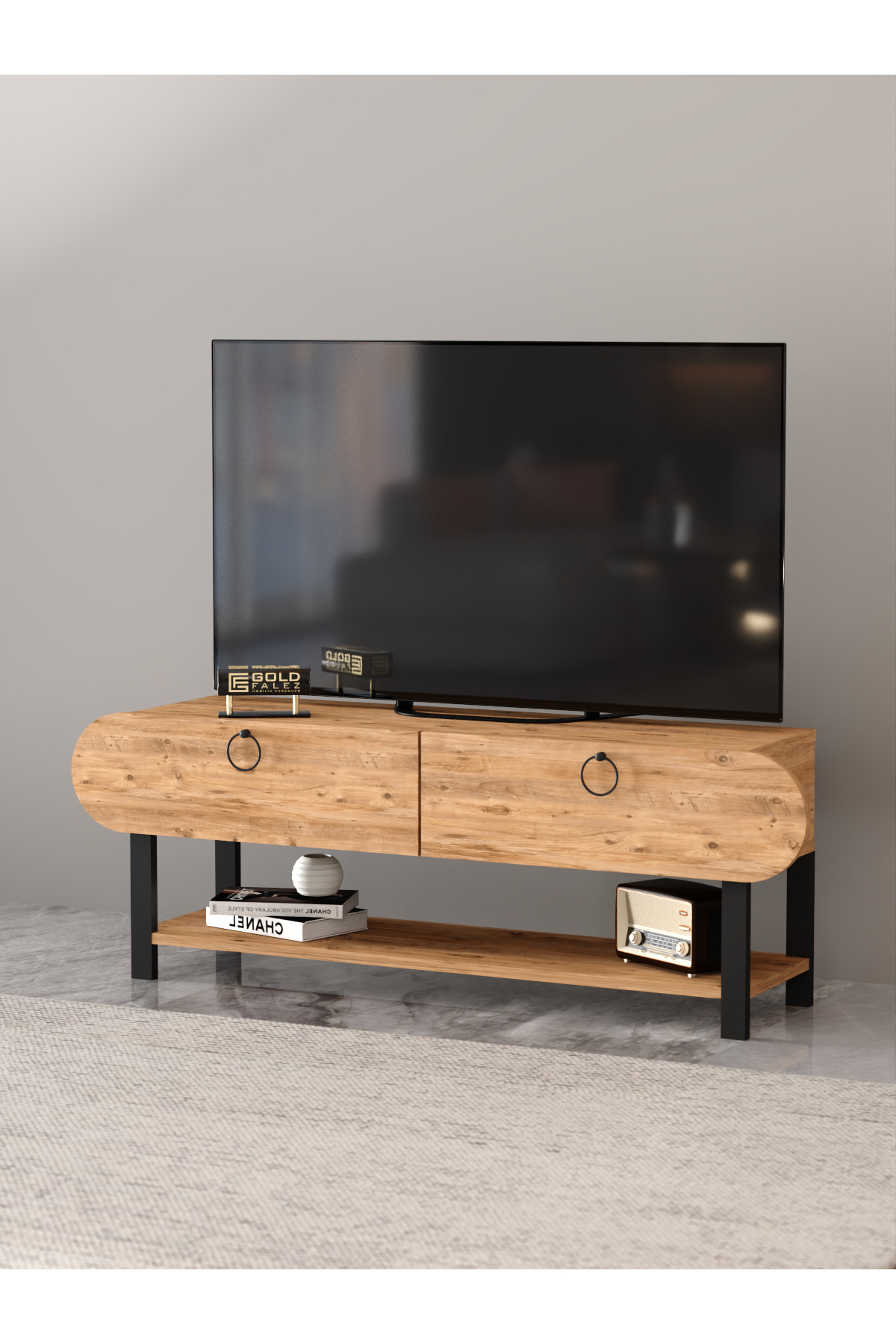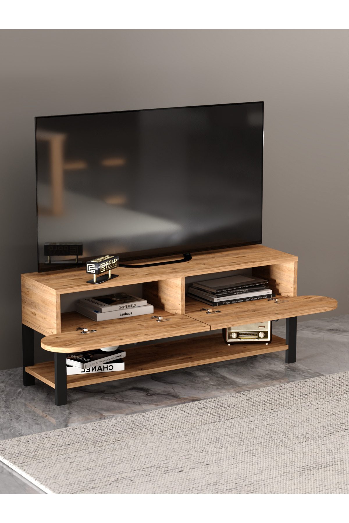 Tv Sehpası Tv Ünitesi Kapaklı Raflı Setro Atlantik Çam