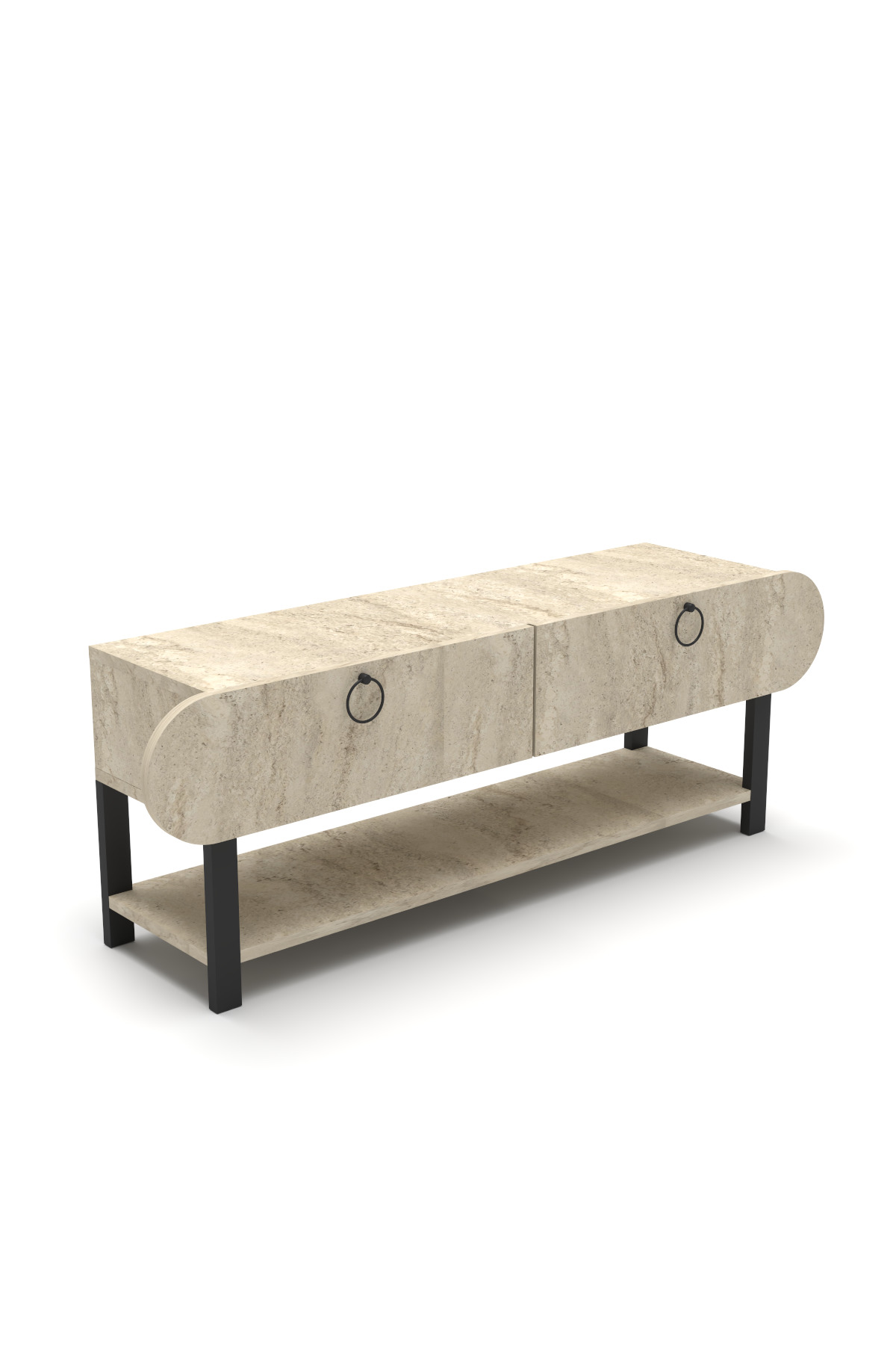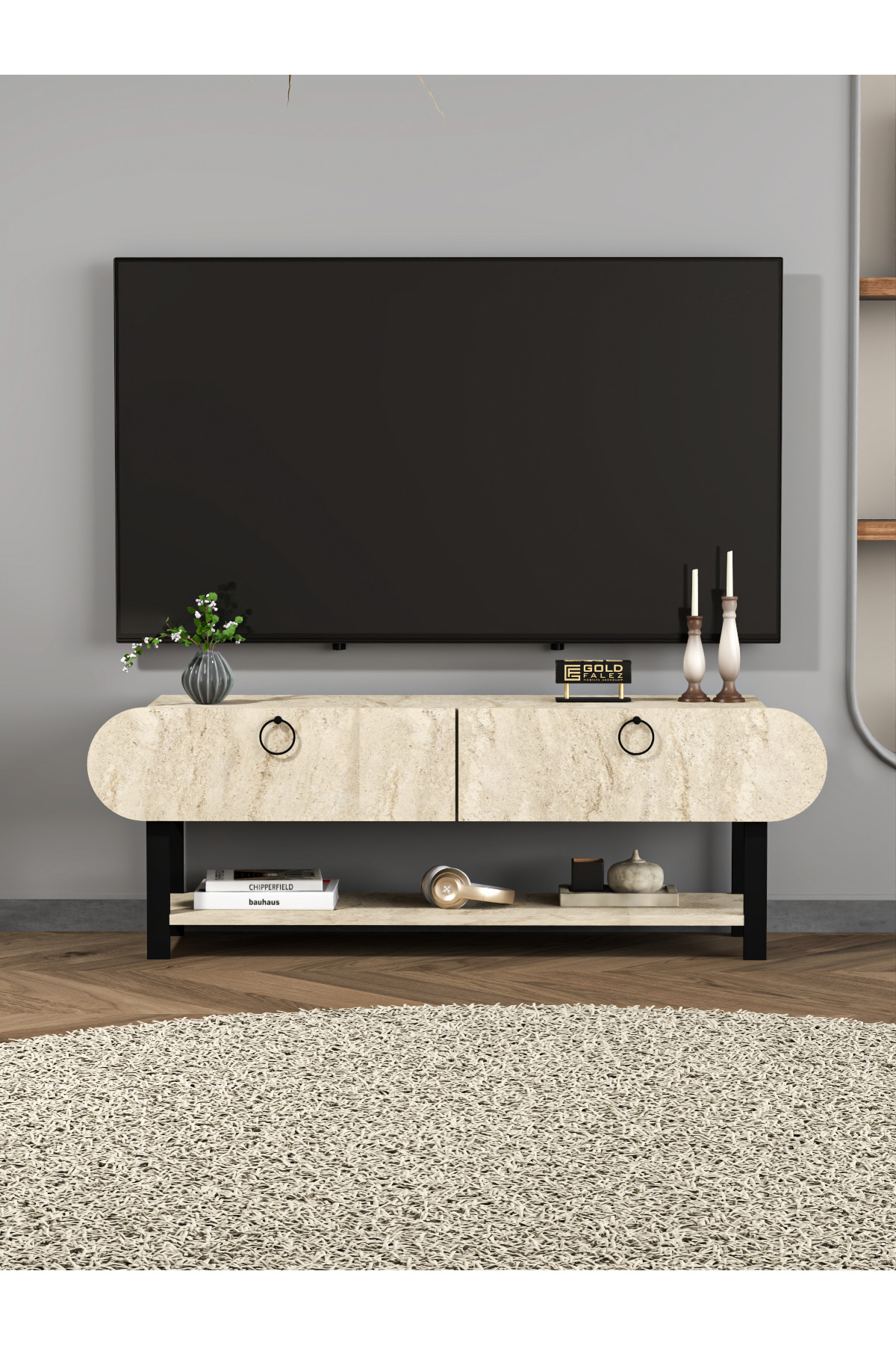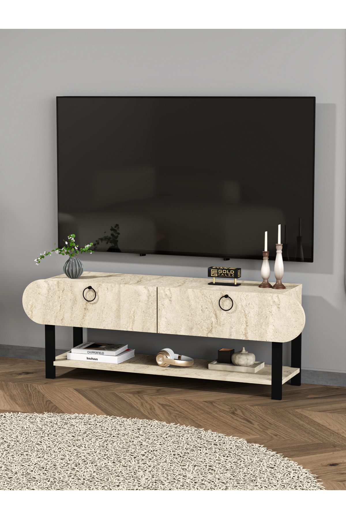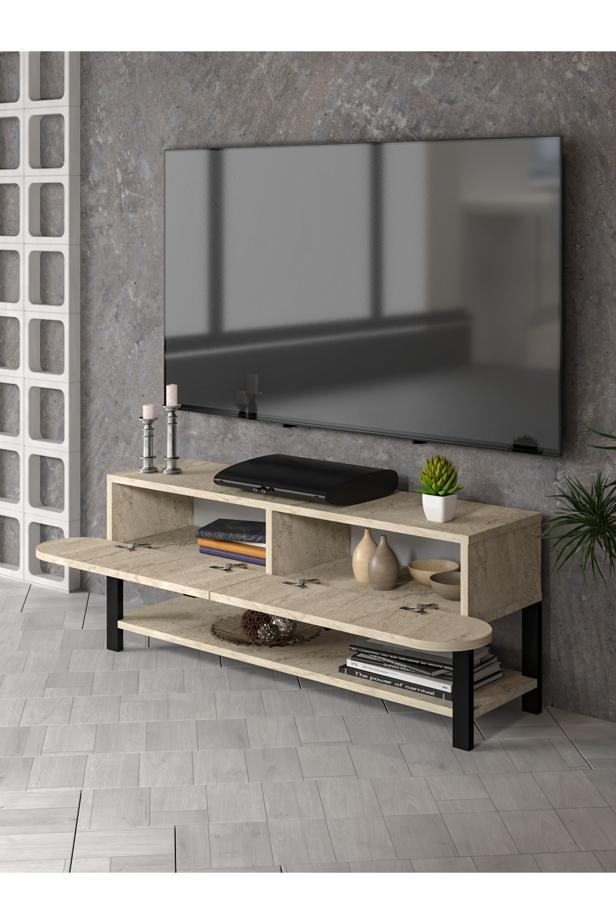 Tv Sehpası Tv Ünitesi Kapaklı Raflı Setro Traverten