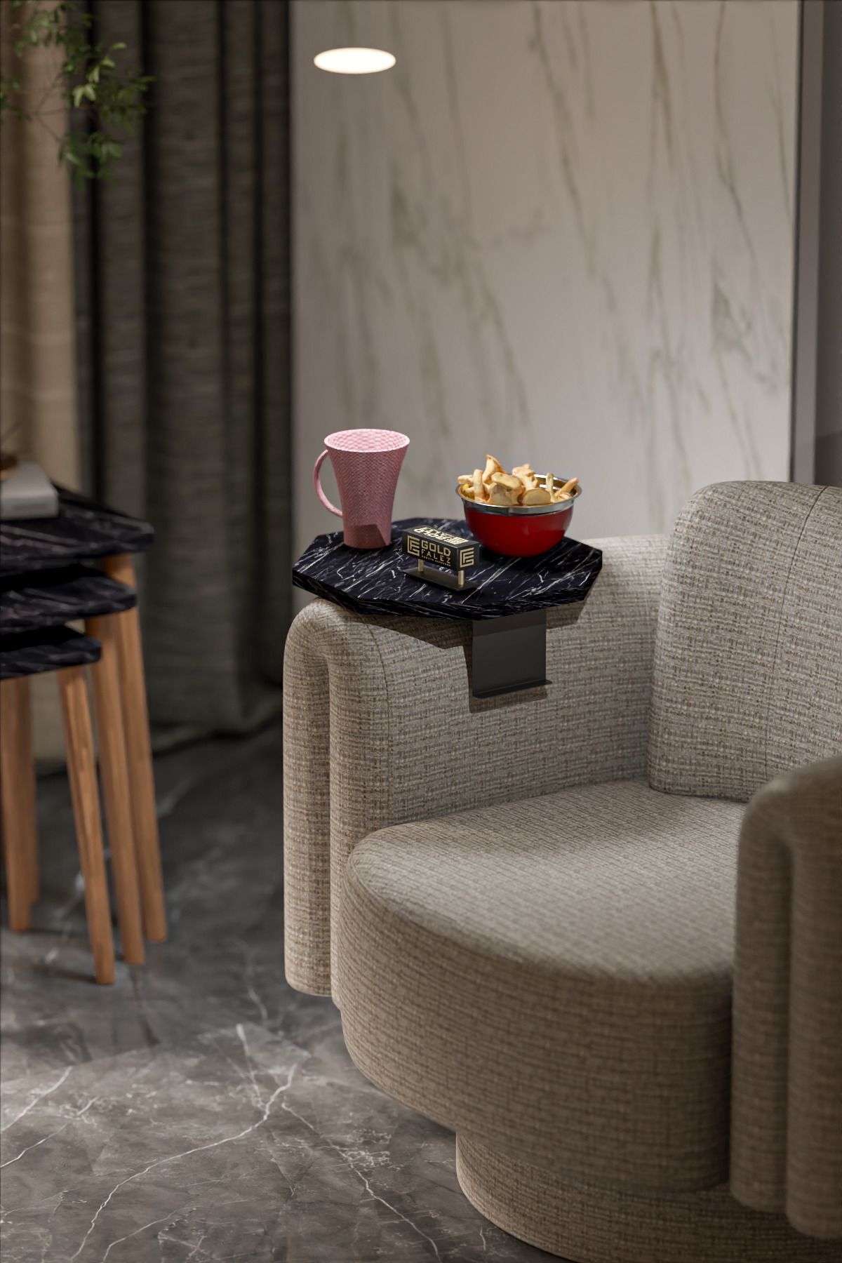 Yan Sehpa Ayarlanabilir Tepsi Dekoratif Modern Tepsi SEKİZGEN Bendir