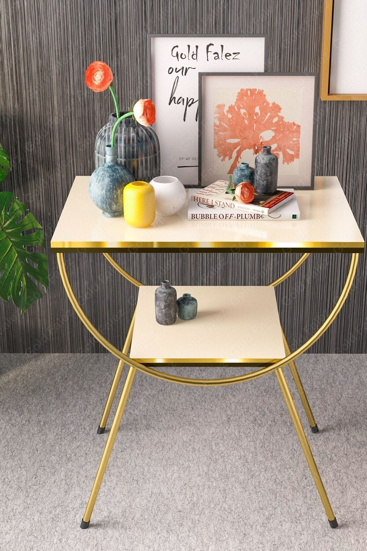 Yan Sehpa Komodin Metal Ayak Çift Gold Krem