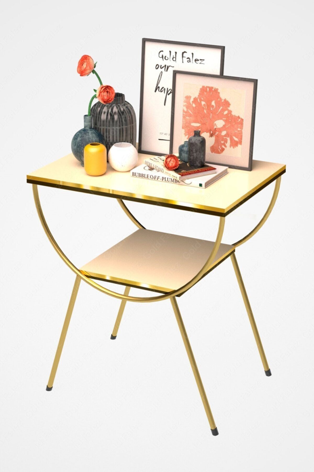 Yan Sehpa Komodin Metal Ayak Çift Gold Krem 1978