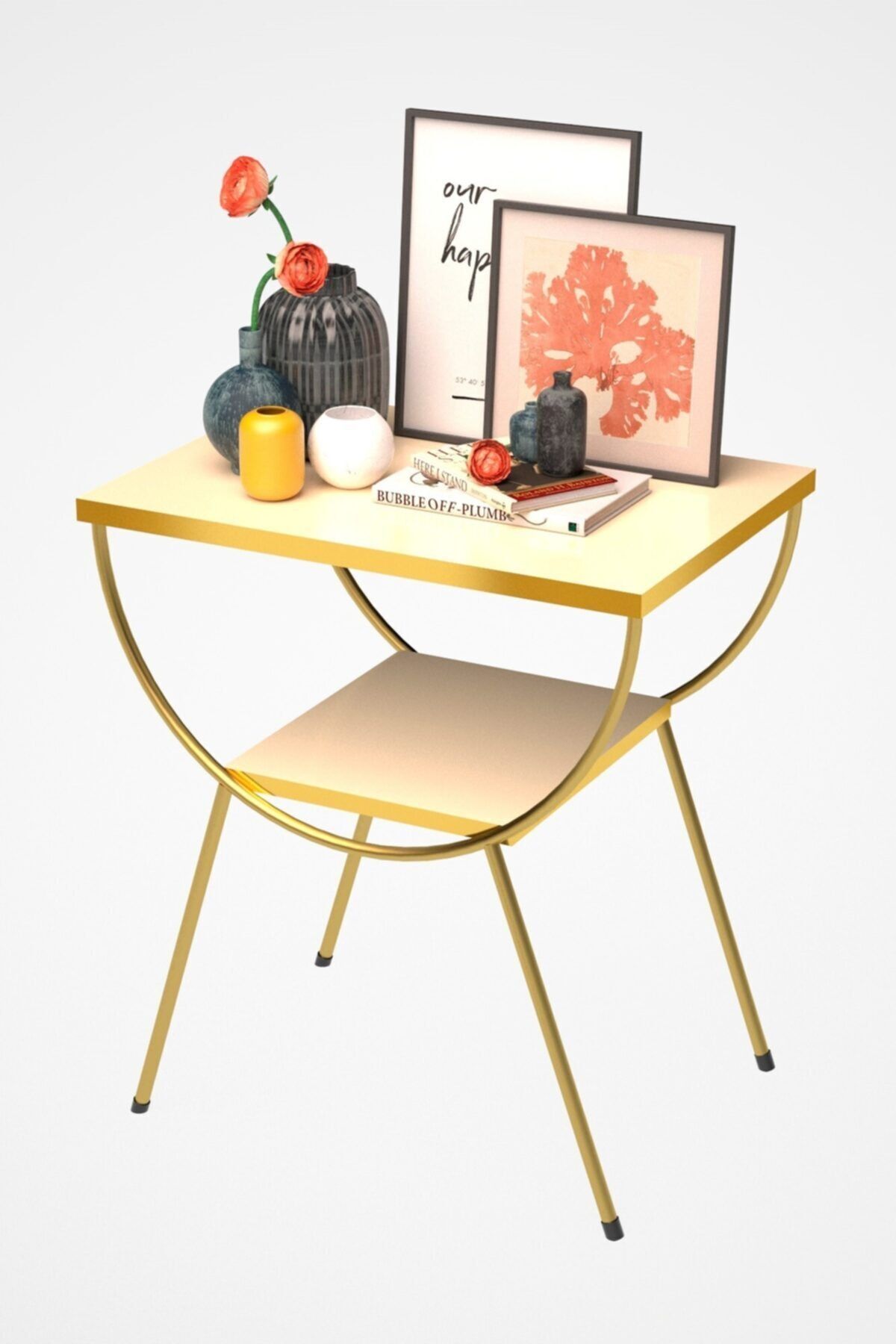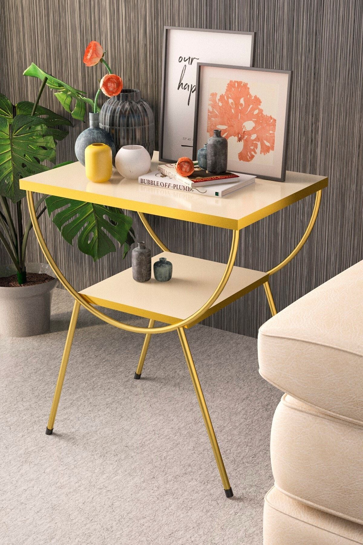 Yan Sehpa Komodin Metal Ayak Gold Krem Tv Ünitesi Yanında Kullanıma Uygun Fırsat Ürünü