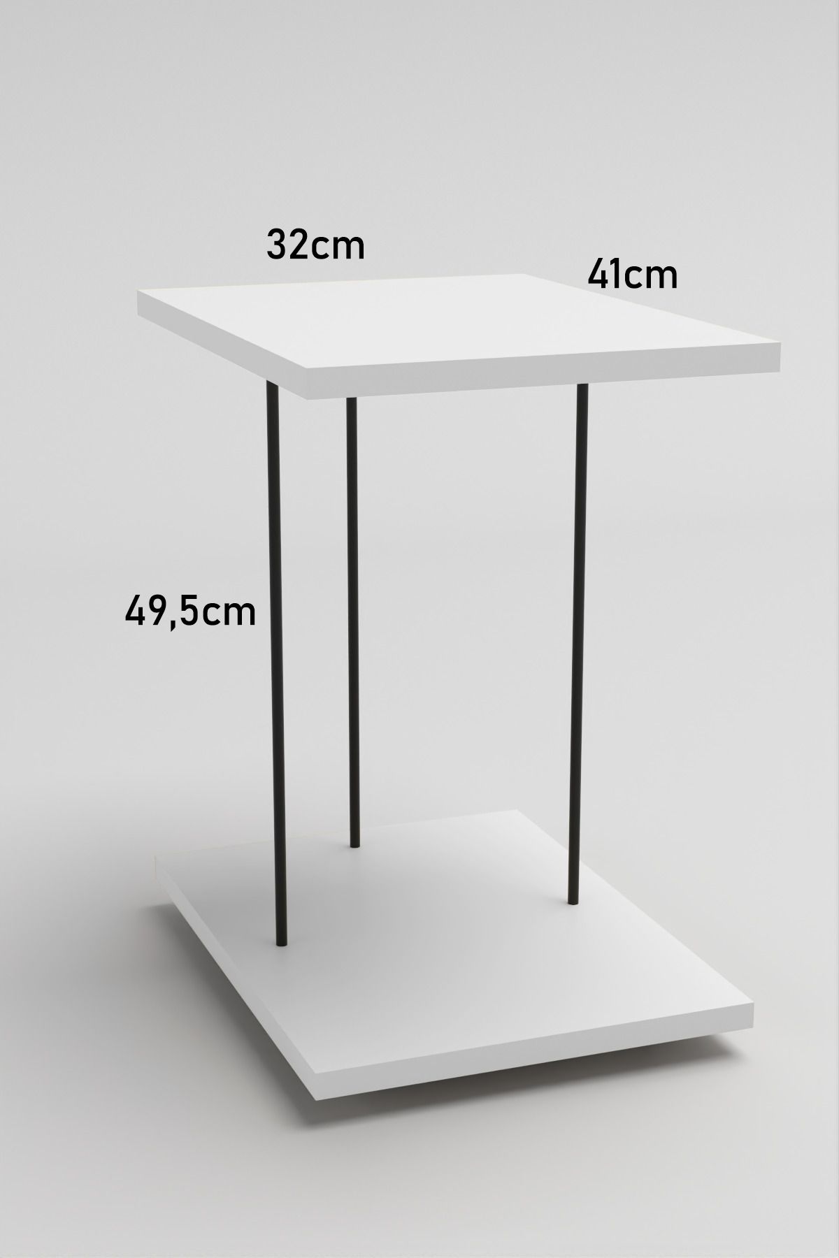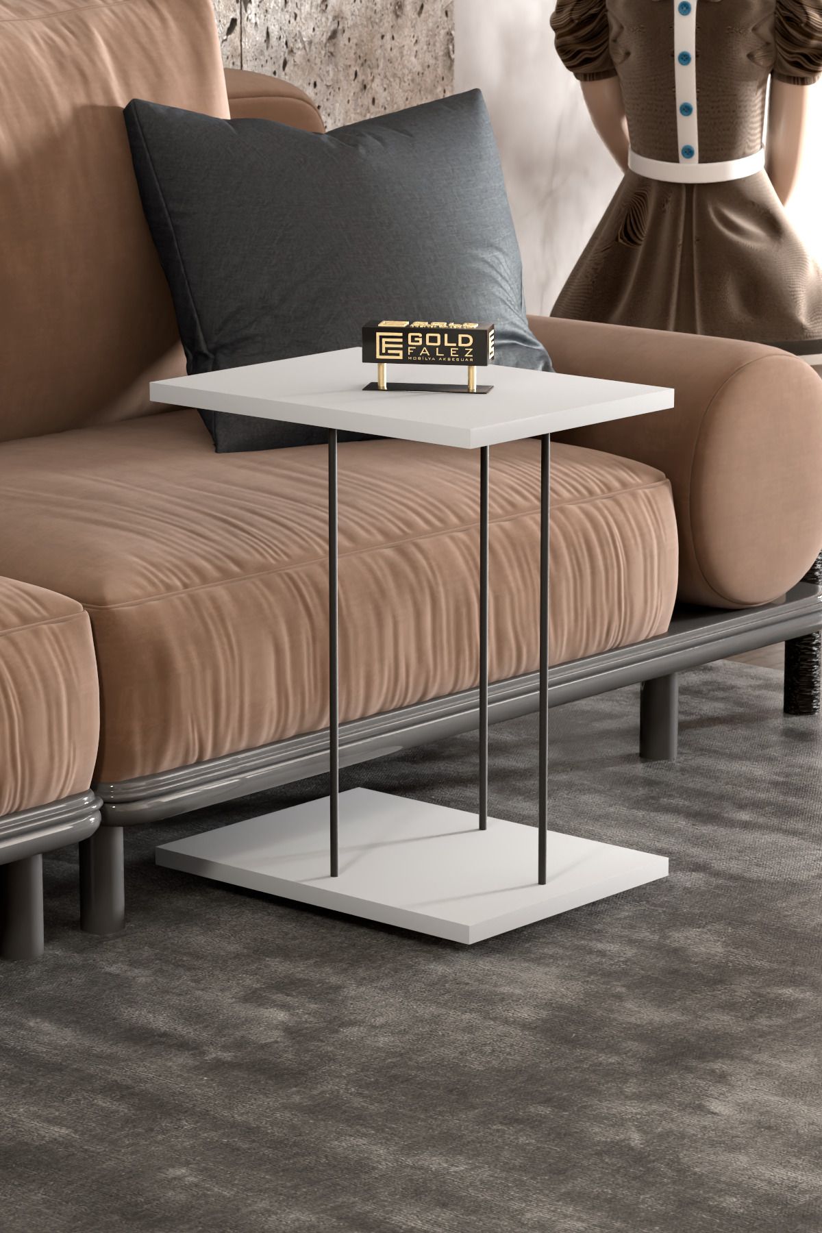 Yan Sehpa Tekerlekli Servis Sehpası HND Dikdörtgen Beyaz