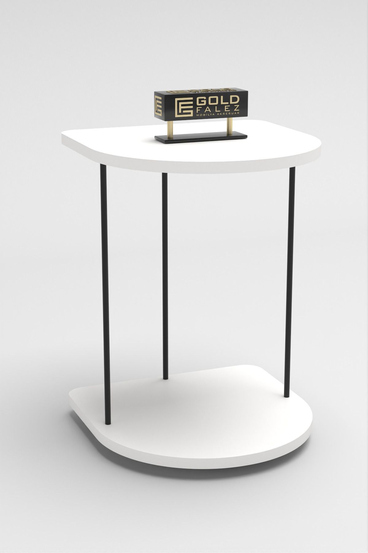 Yan Sehpa Tekerlekli Servis Sehpası HND Oval Beyaz